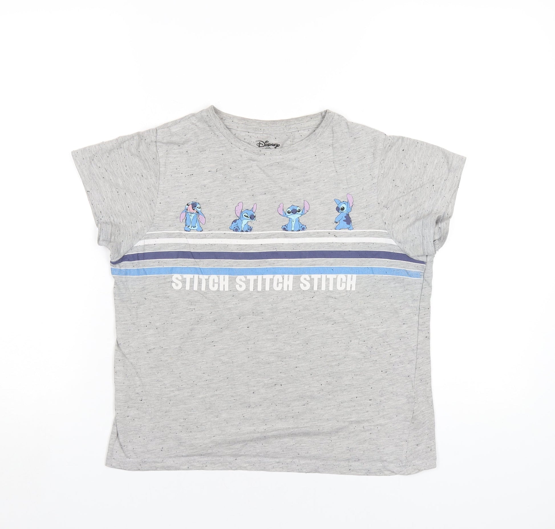 Disney Womens Grey Cotton Basic T-Shirt Size 6 Round Neck - Lilo & Stitch