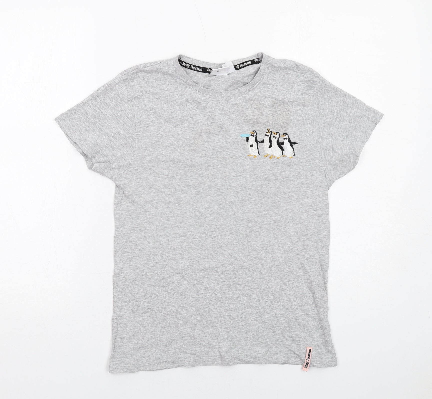 Disney Womens Grey Cotton Basic T-Shirt Size XS Round Neck - Mary Poppins Penguins