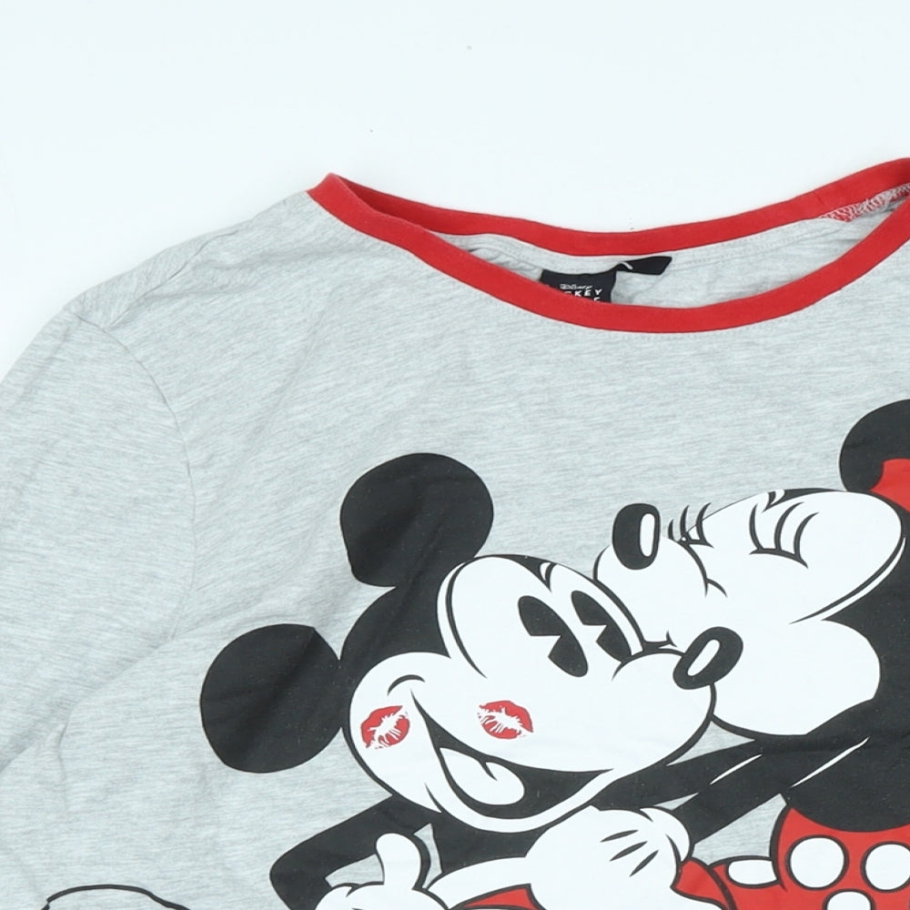 Disney Womens Grey Cotton Jersey T-Shirt Size L Crew Neck - Micky Mouse