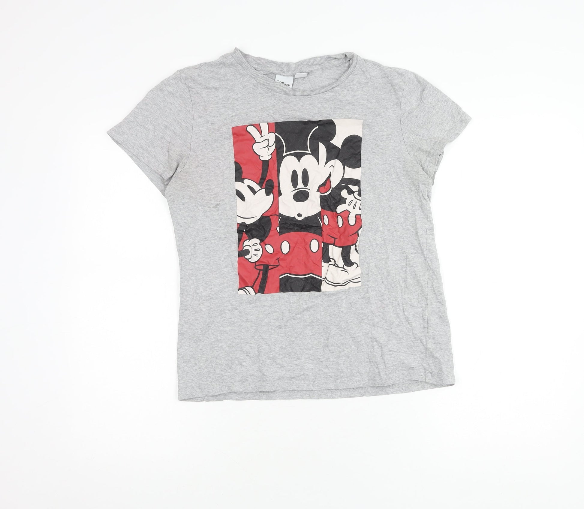 Disney Women's Grey Mickey T-Shirt, Size S, Casual Style