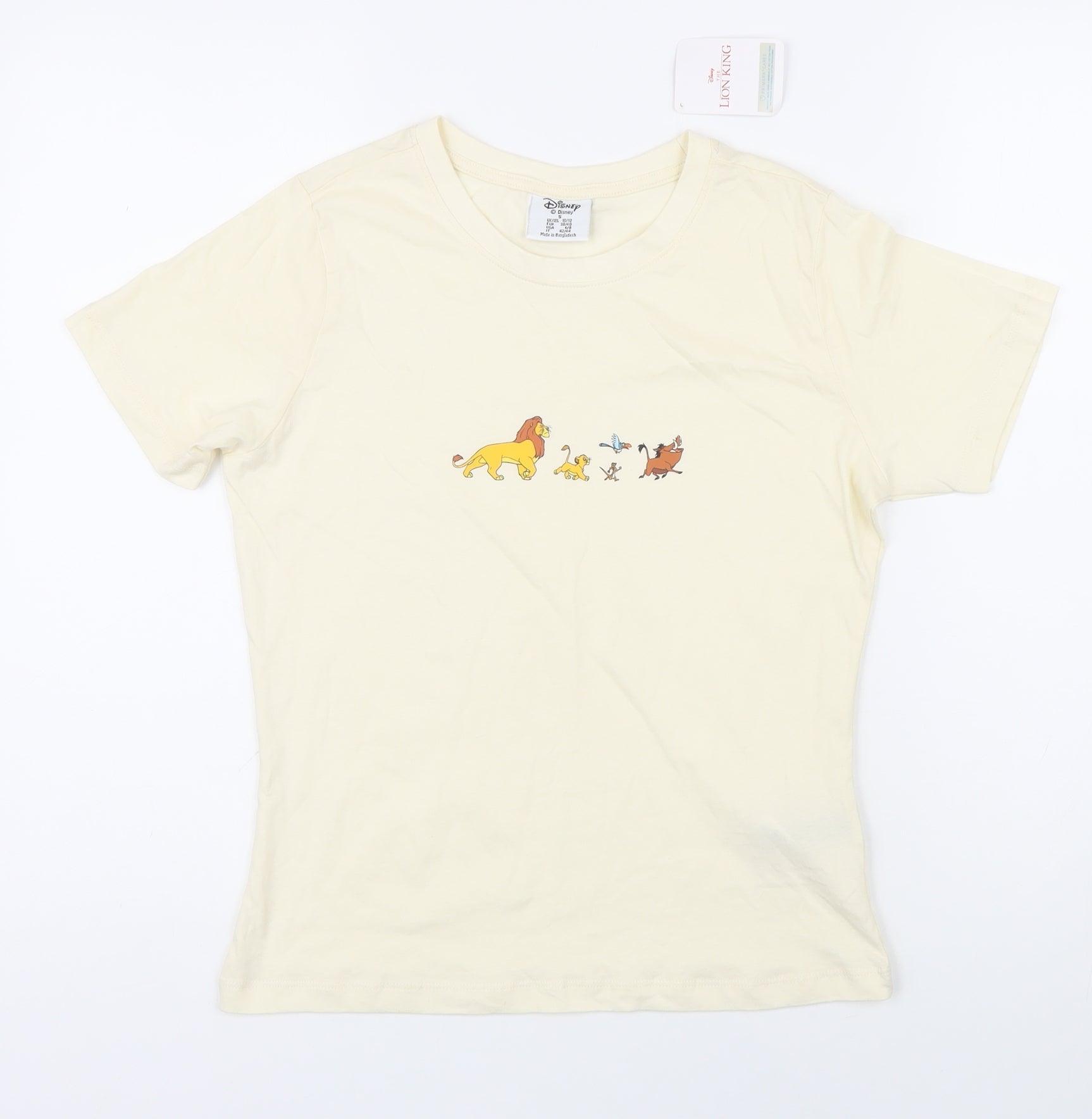 Disney Womens Ivory 100% Cotton Basic T-Shirt Size S Round Neck - Lion King