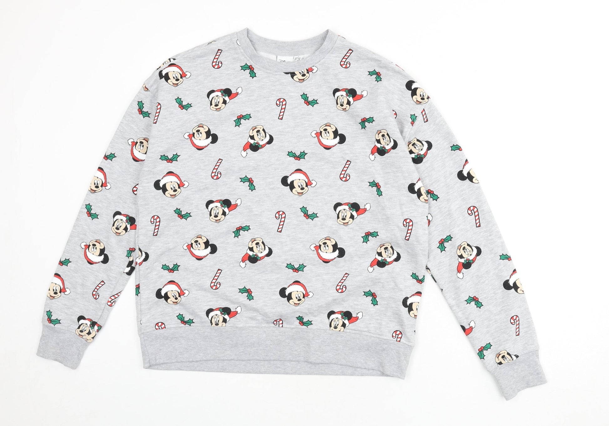 Disney Womens Ivory Geometric Cotton Pullover Sweatshirt Size 10 Pullover - Size 10/12, Christmas, Mickey Mouse