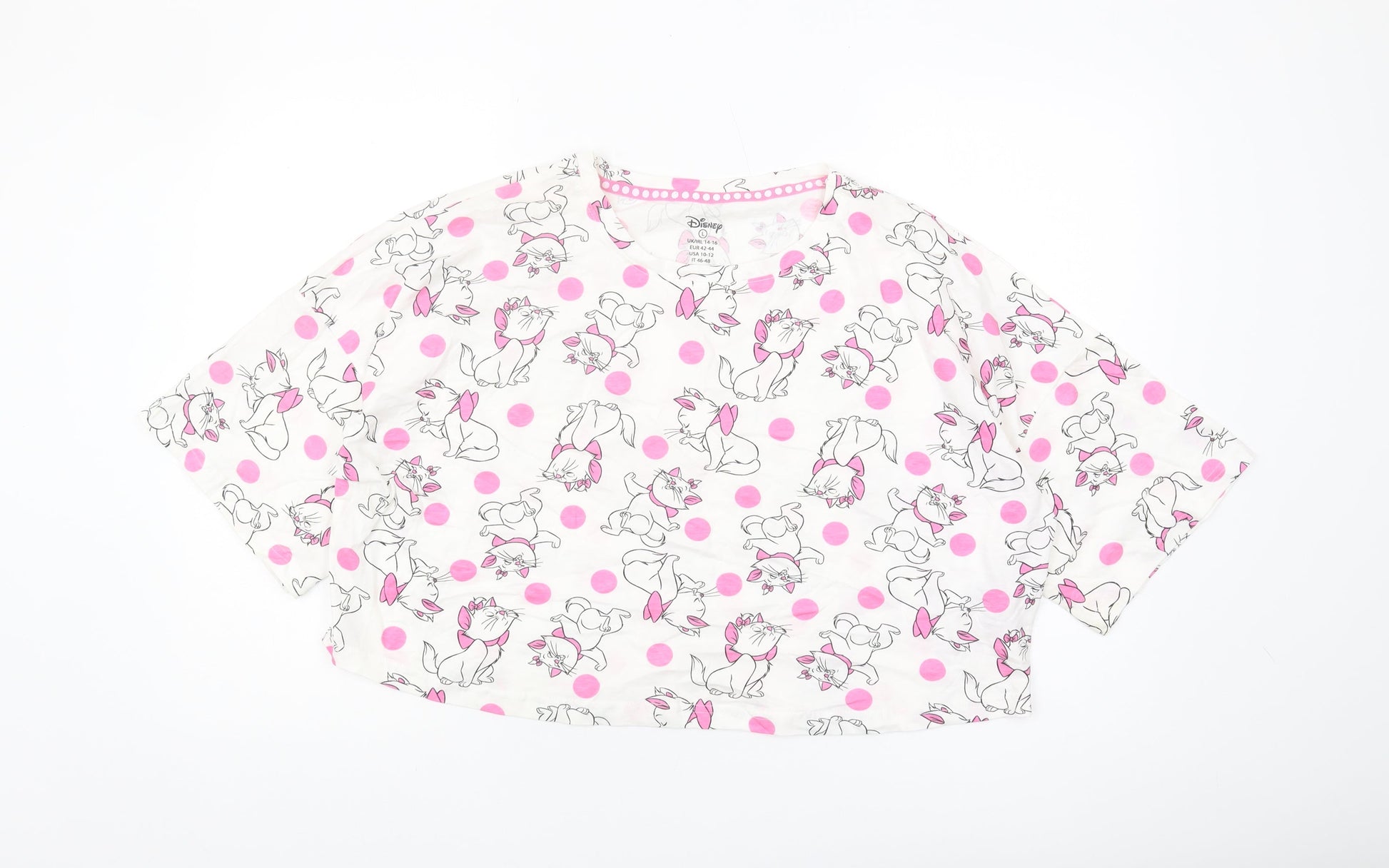 Disney Women's L White Polka Dot Cropped T-Shirt