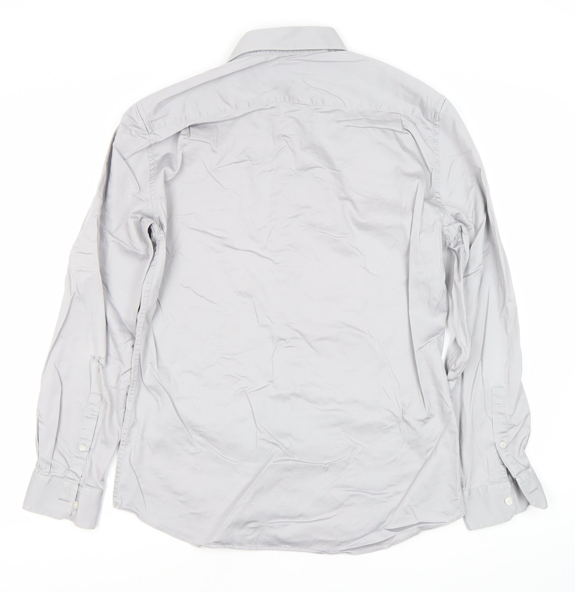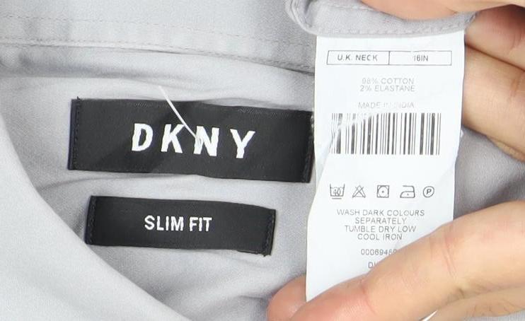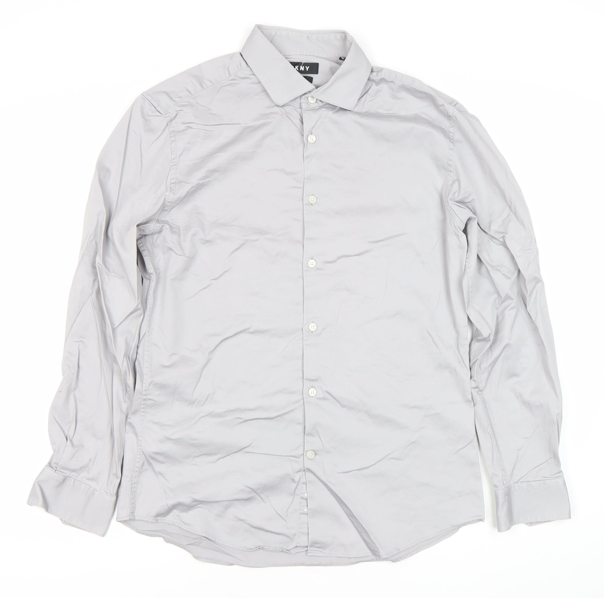 DKNY Men’s Grey Slim Fit Long Sleeve Formal Dress Shirt L 41cm