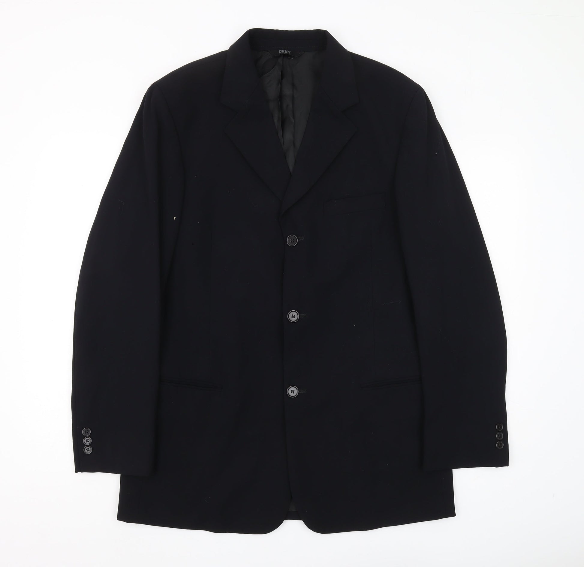 DKNY Men's Black Wool Blazer 40R - Classic Business Jacket