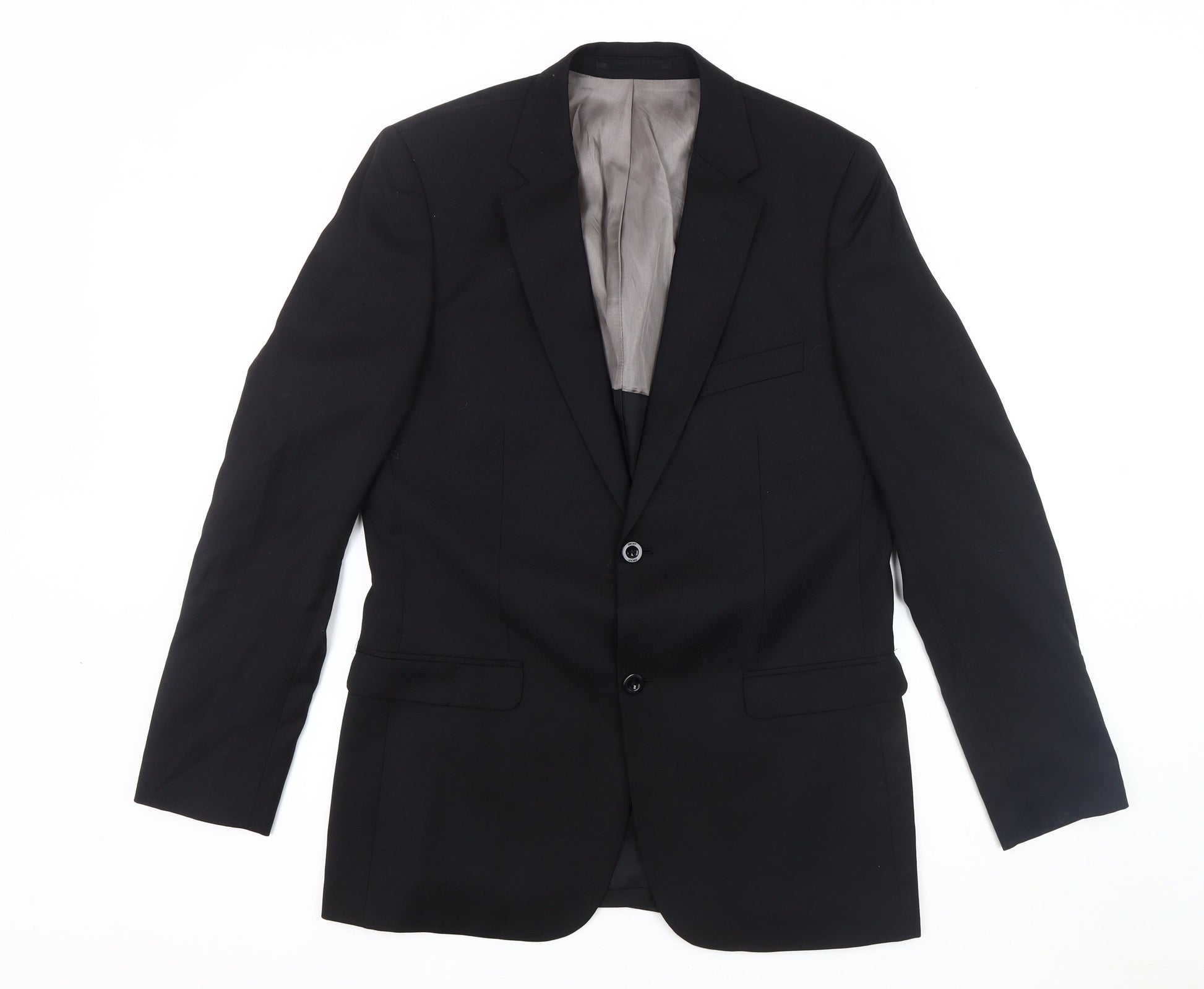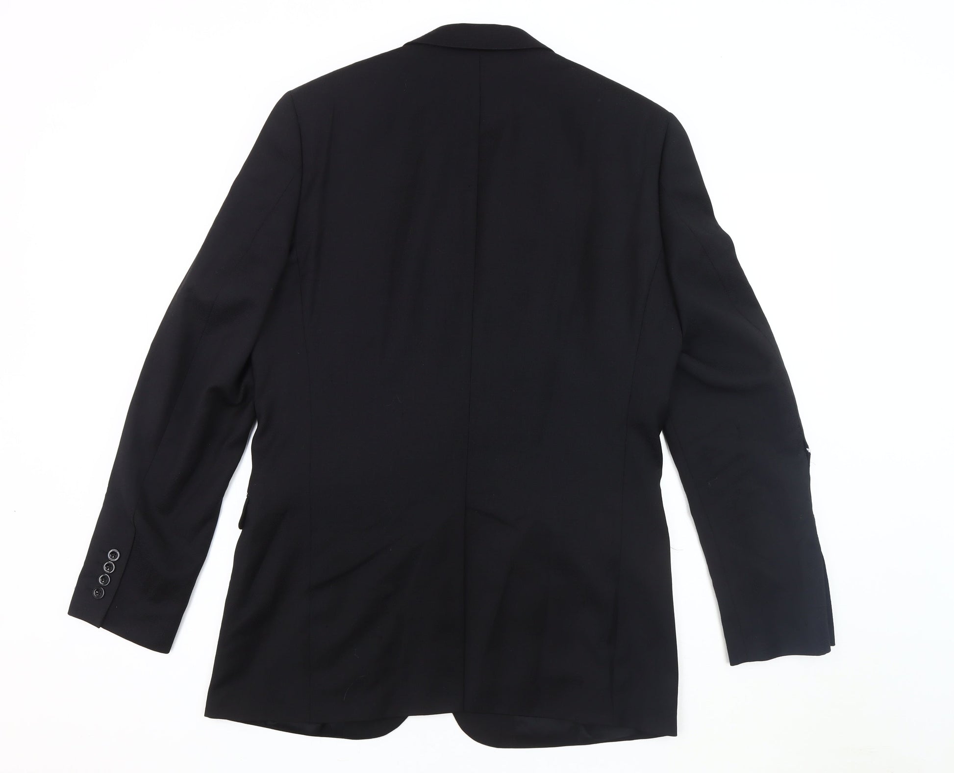 DKNY Men's Black Wool Blazer, 42 L, Single-Breasted