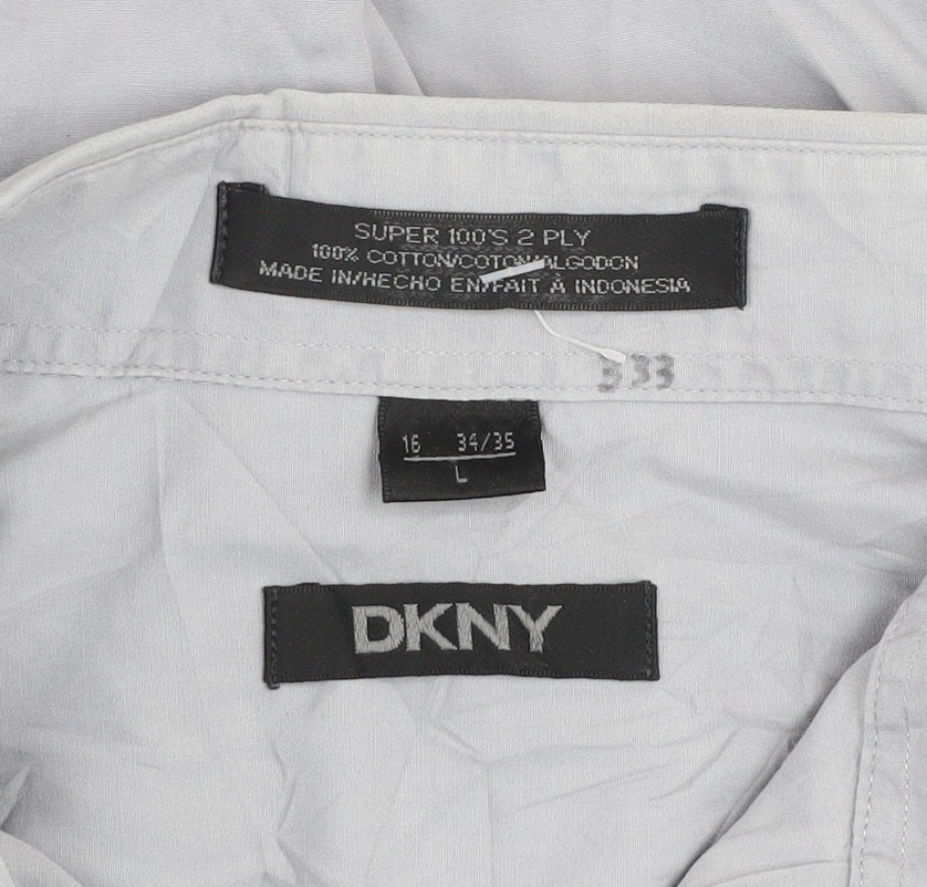 DKNY Men's Grey Cotton Long Sleeve Dress Shirt Size L 16 34/35