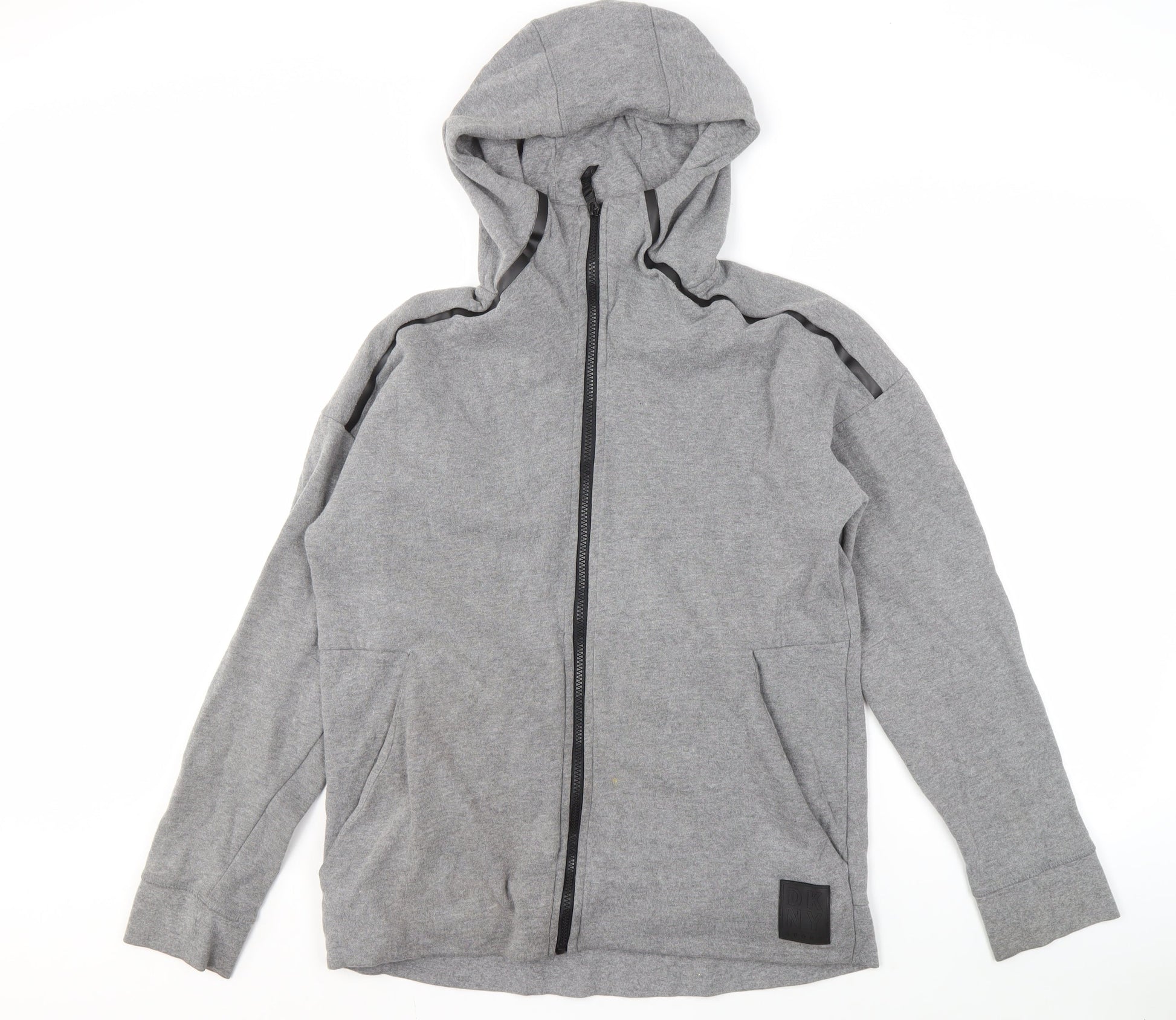 DKNY Men's Grey Full Zip Hoodie, Small, Logo Accents