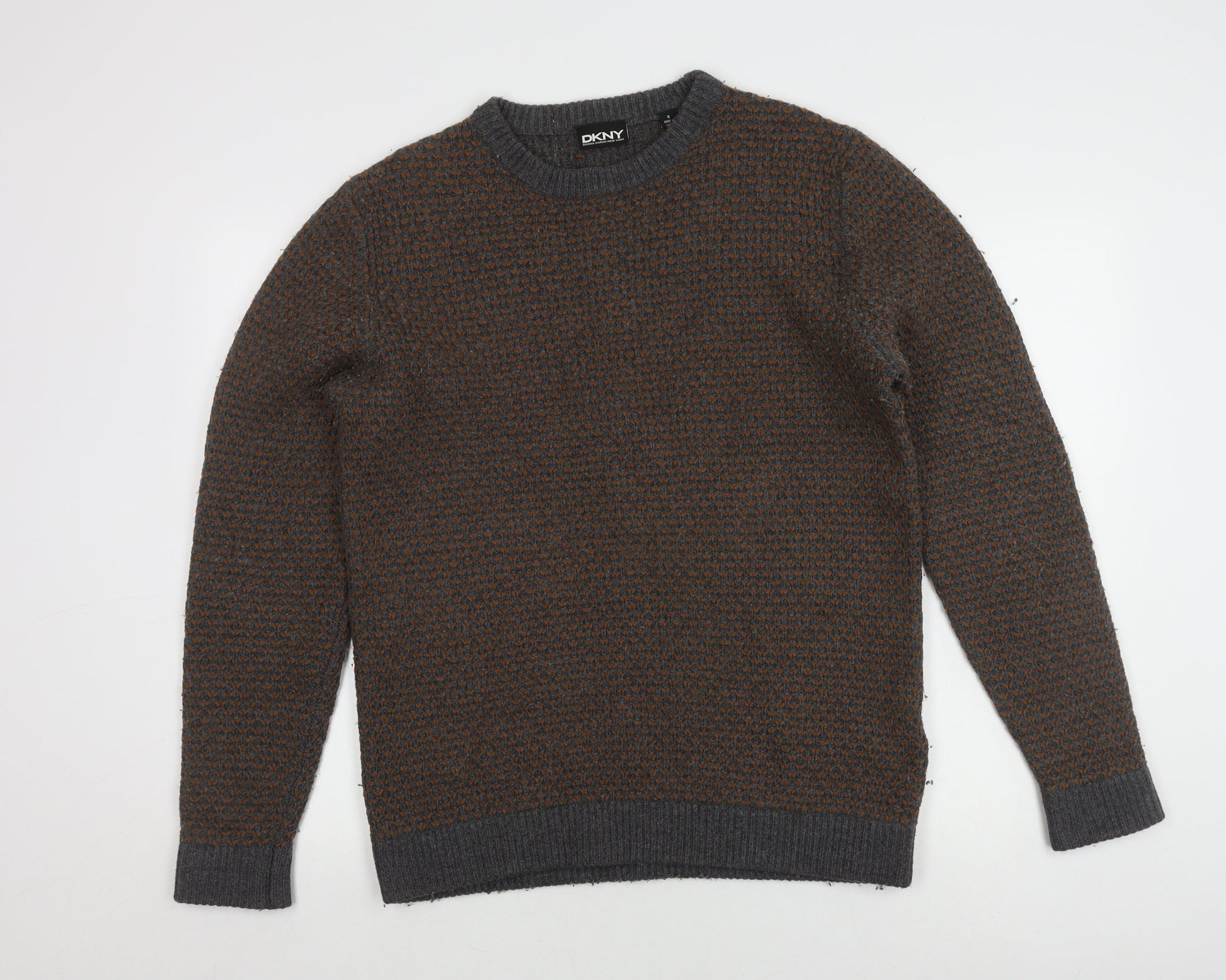 DKNY Men's Grey Waffle-Knit Pullover Jumper S