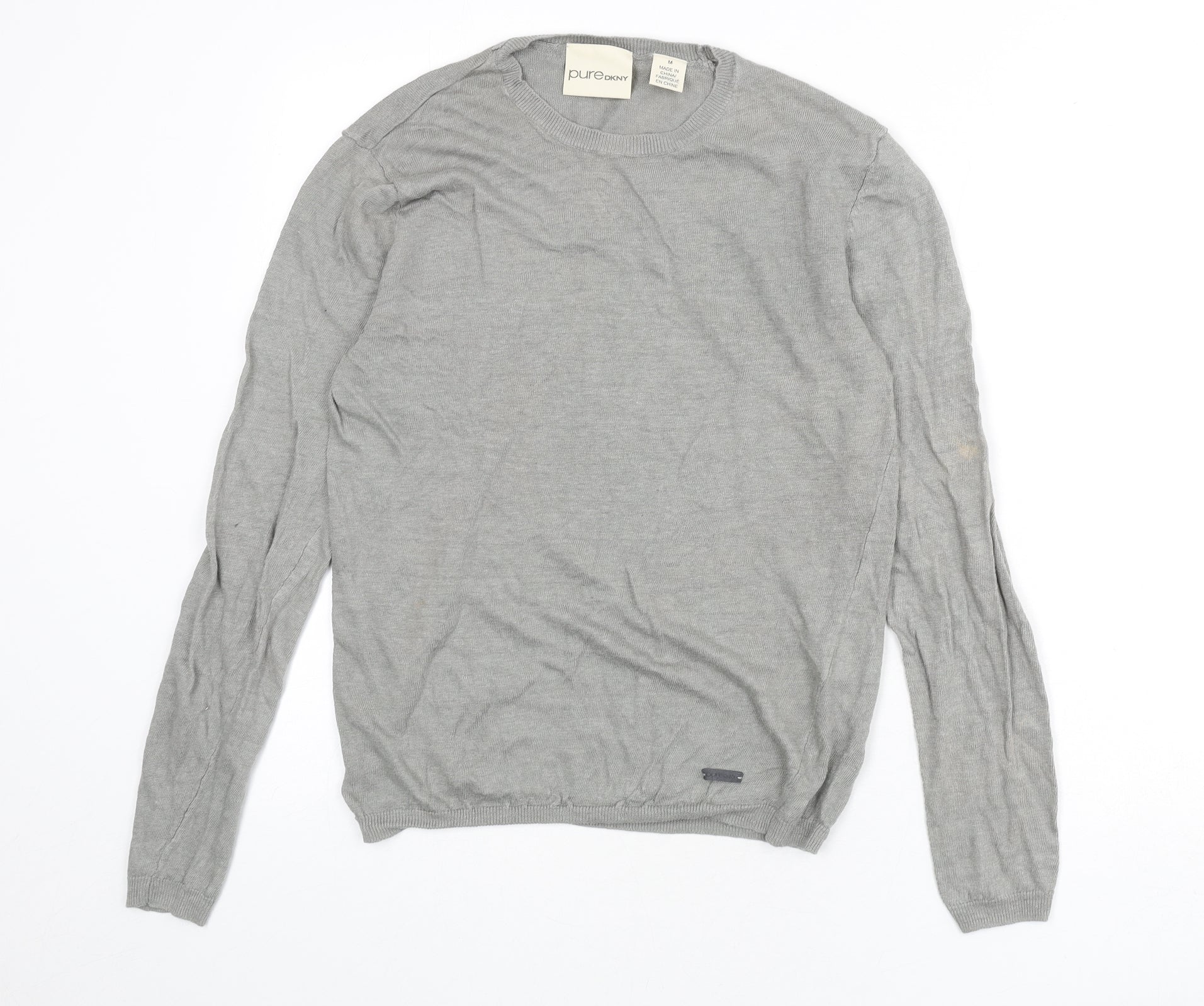 DKNY Pure Womens Grey Round Neck Linen Pullover Jumper Size M