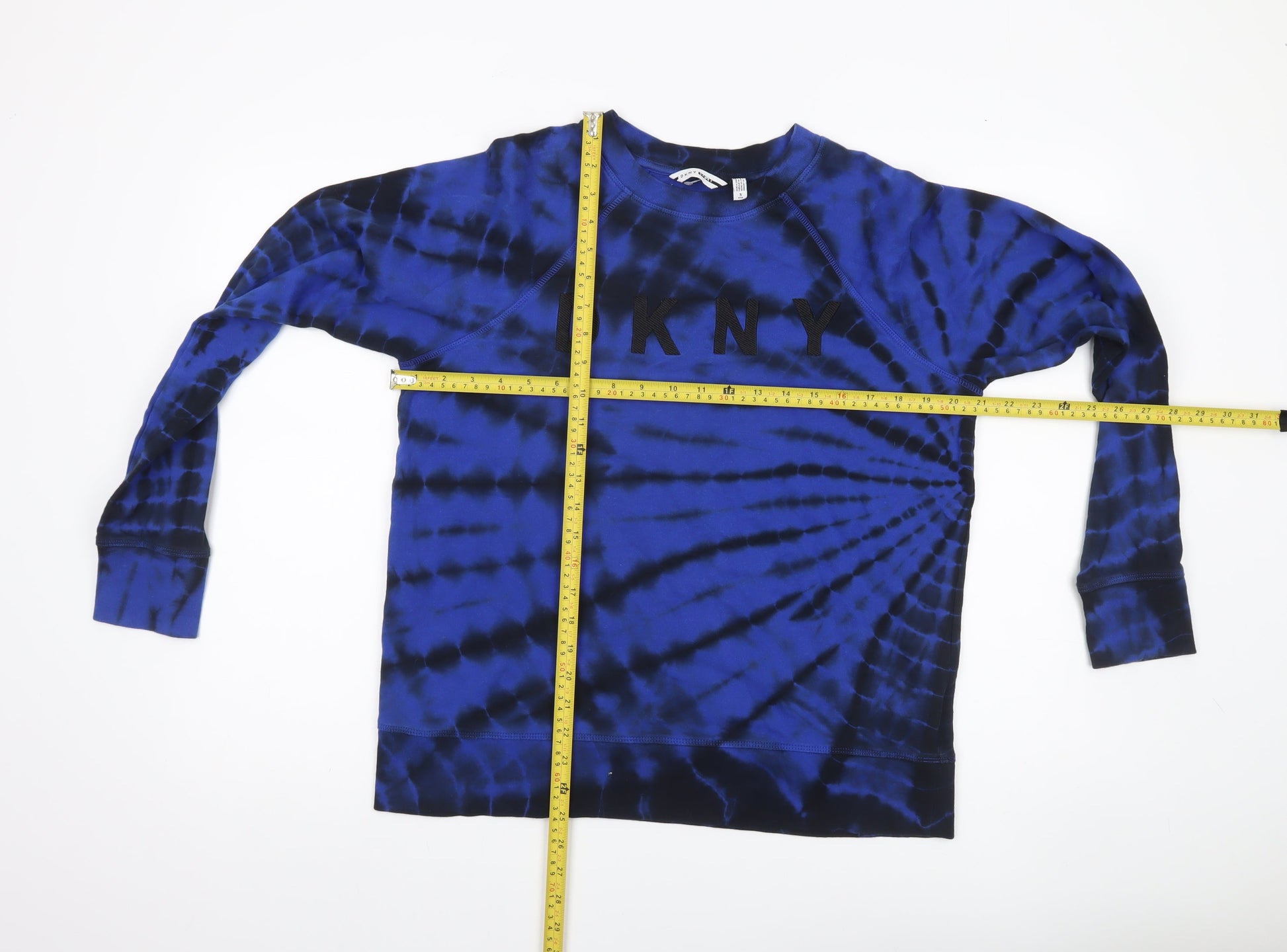 DKNY Sport Unisex Blue Tie-Dye Logo Sweatshirt S Pullover Cotton