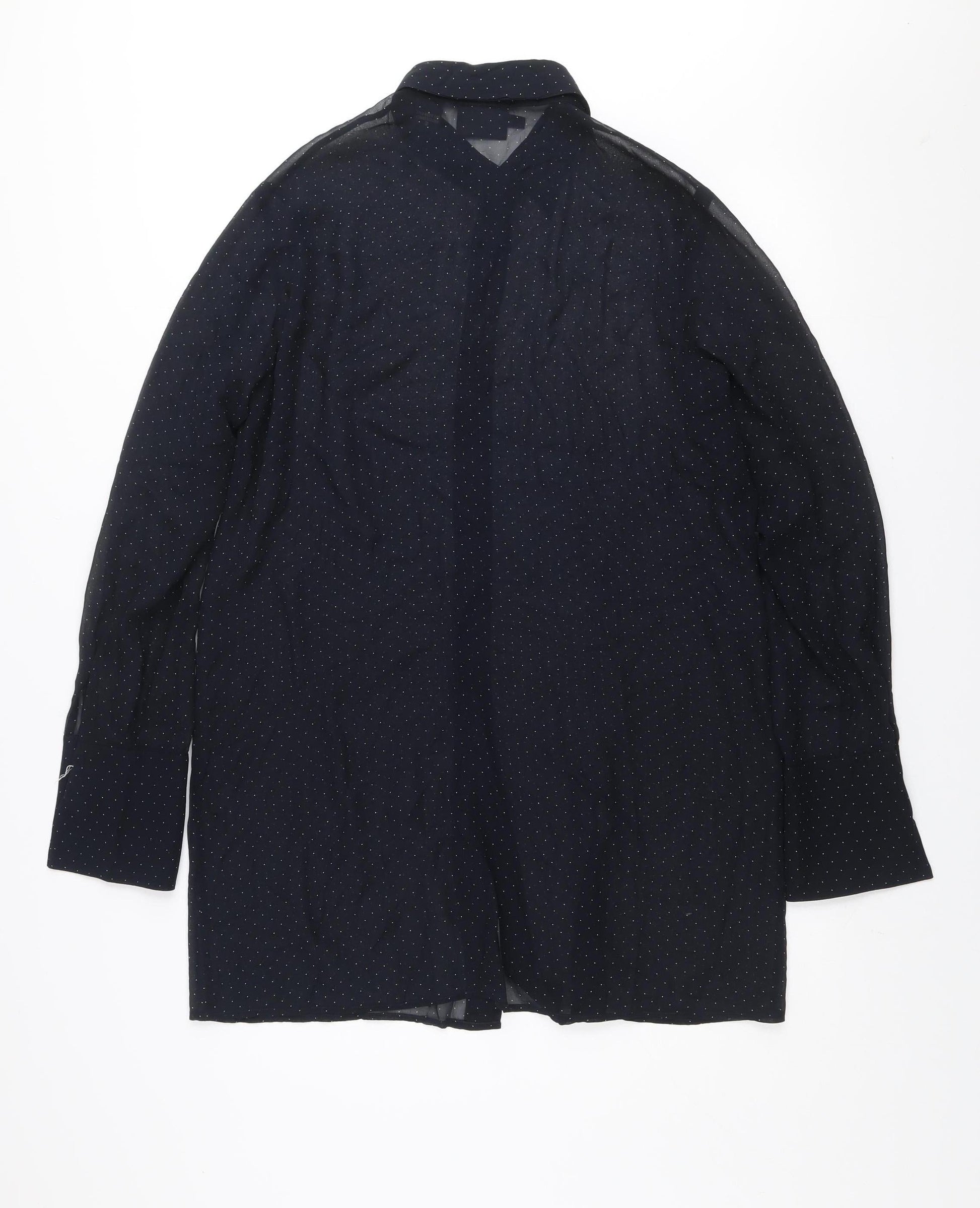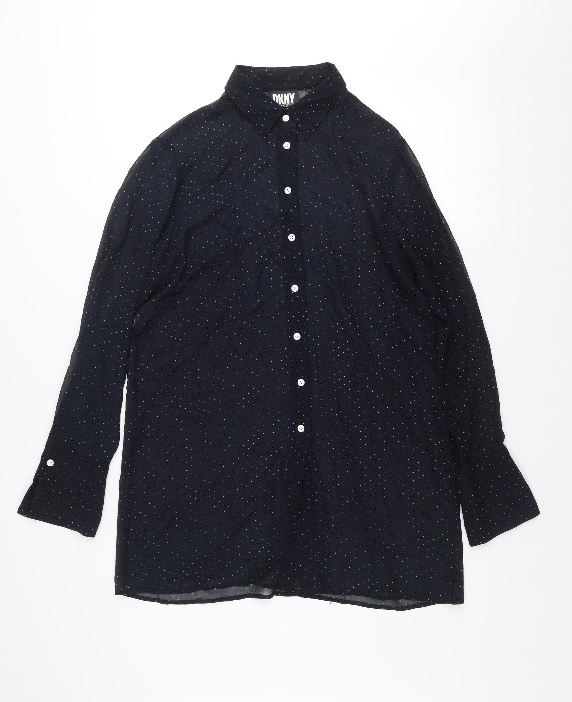 DKNY Women Black Polka Dot Silk Button-Up Long Sleeve Shirt L