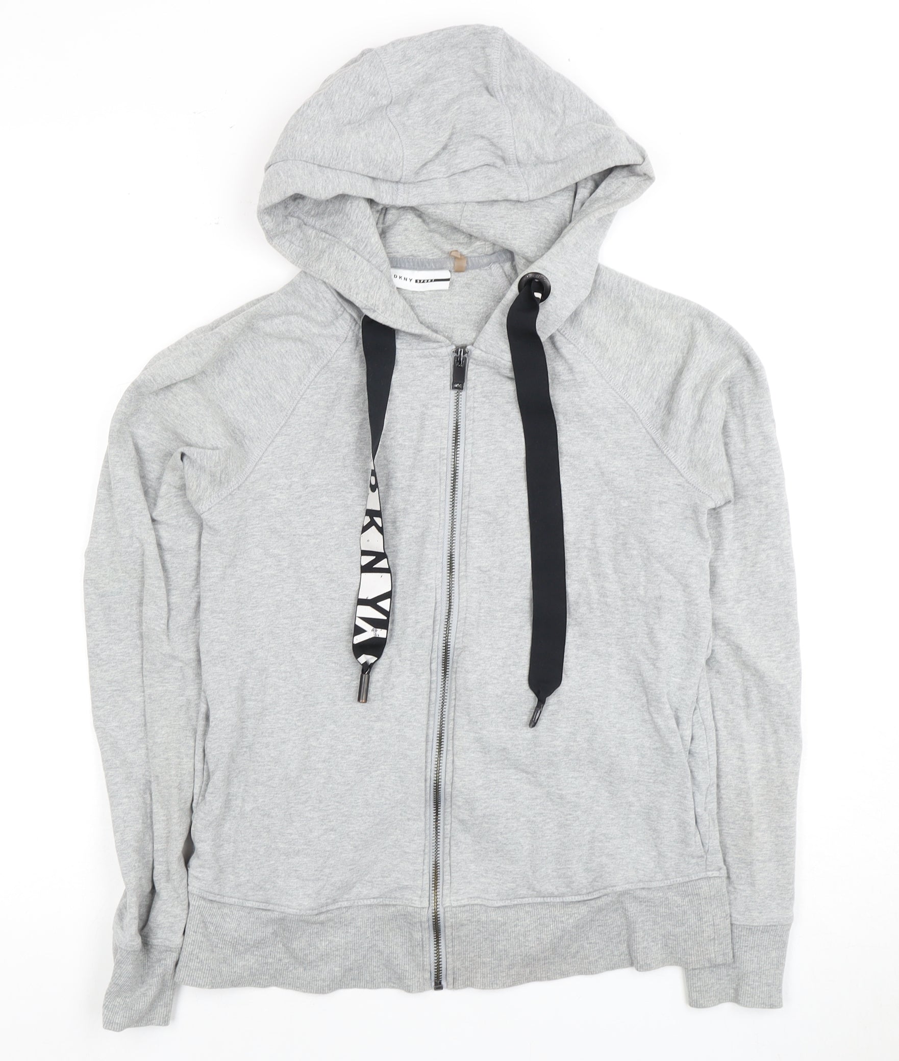 DKNY Women Grey Hoodie, Size S, with Logo & Zip