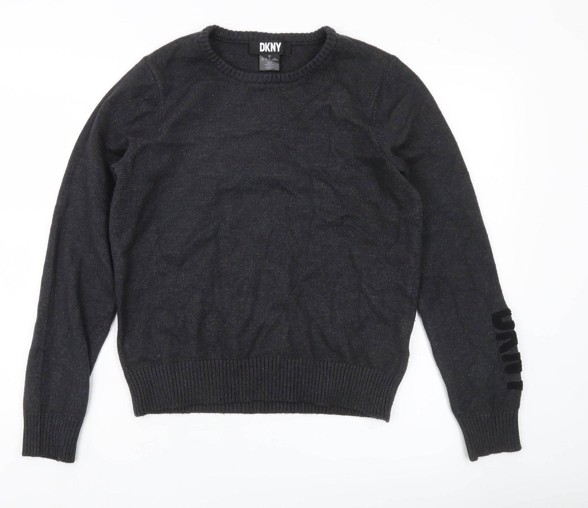 DKNY Women’s Black Crew Neck Knit Jumper Size 12 Long Sleeve Pullover