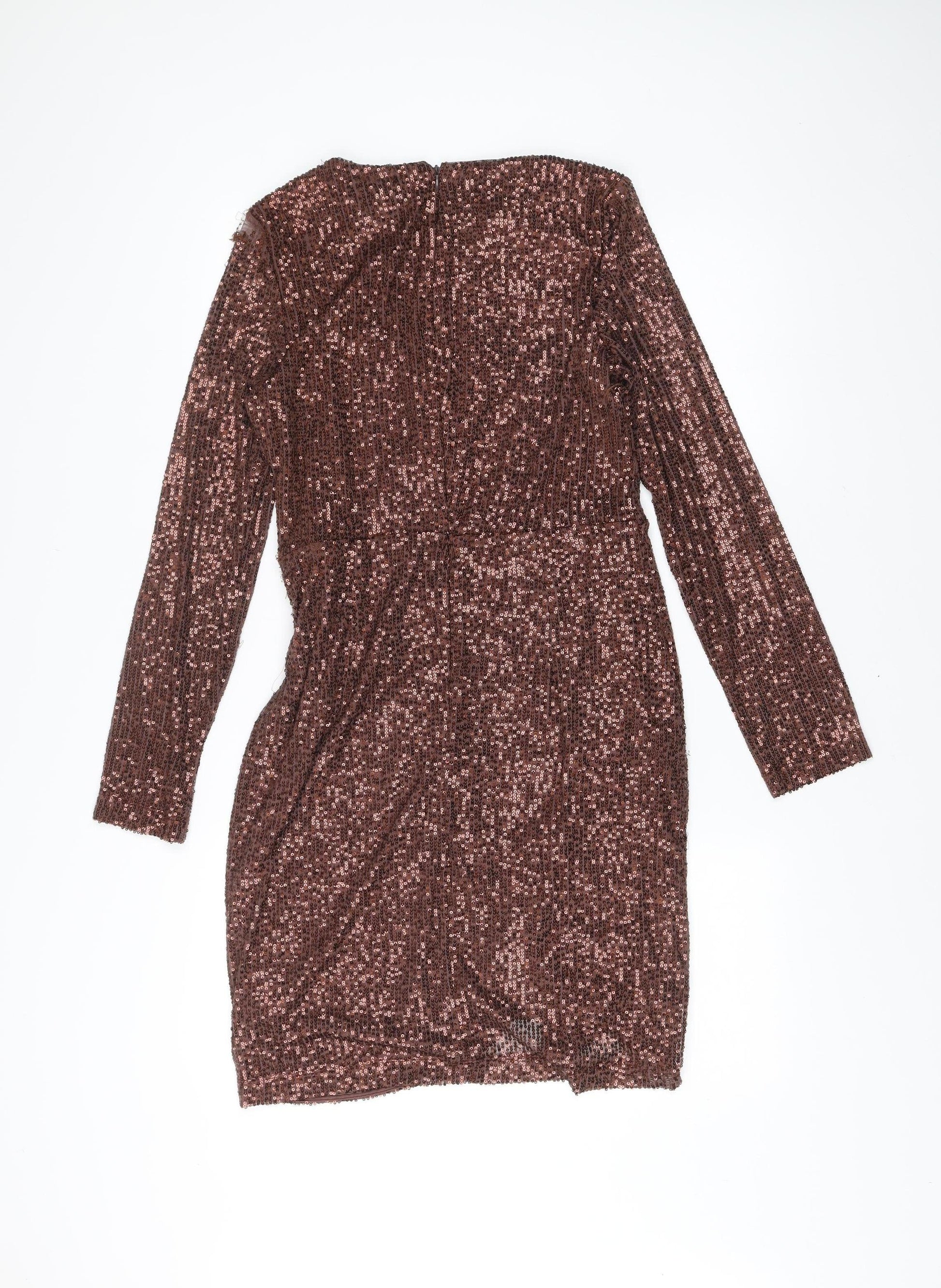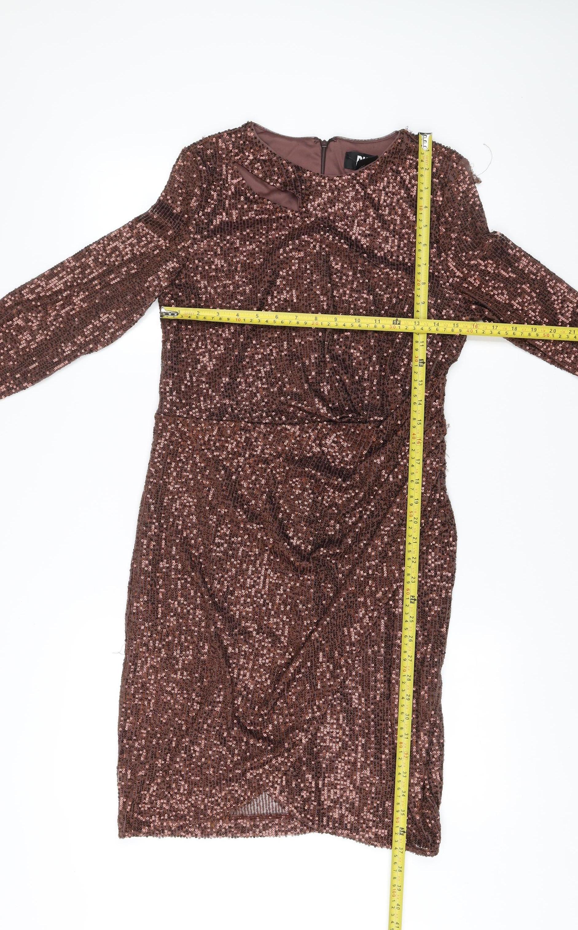 DKNY Women’s Brown Sequin Bodycon Dress Size 12 Long Sleeve Knee Length