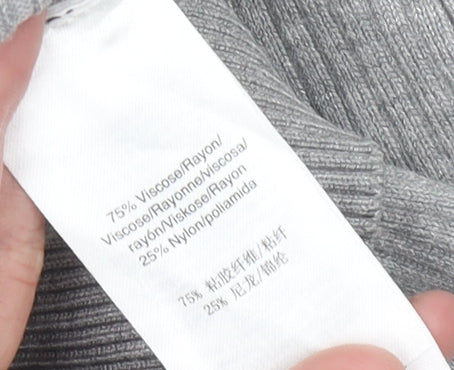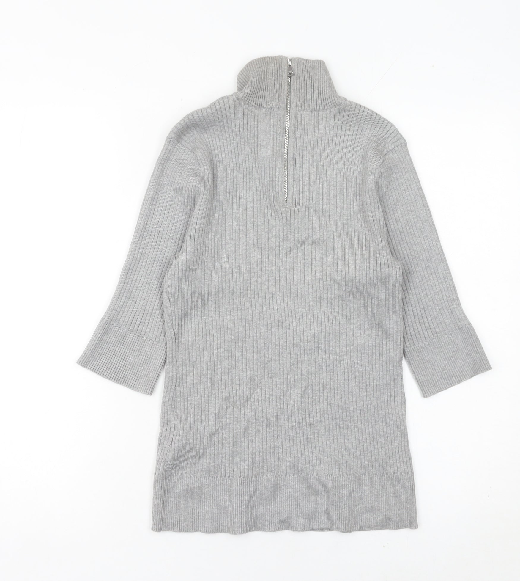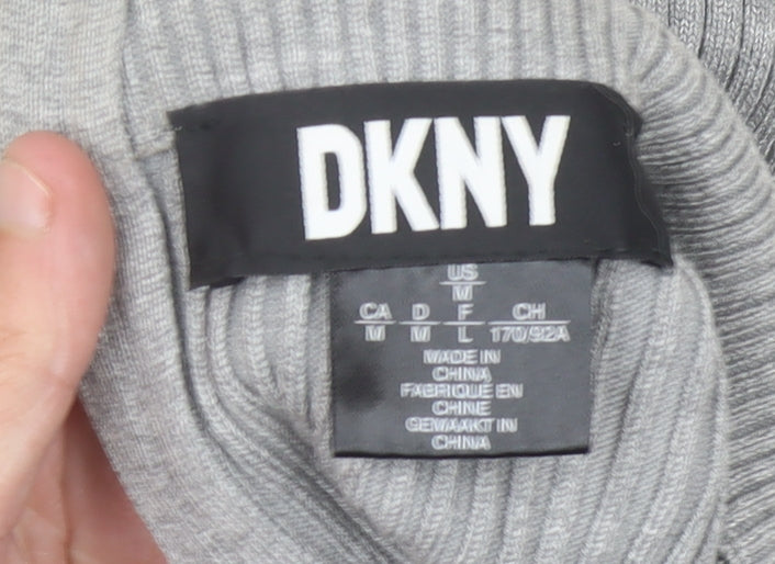 DKNY Women’s Grey Roll Neck Tunic Jumper Size M 3/4 Sleeve Knit