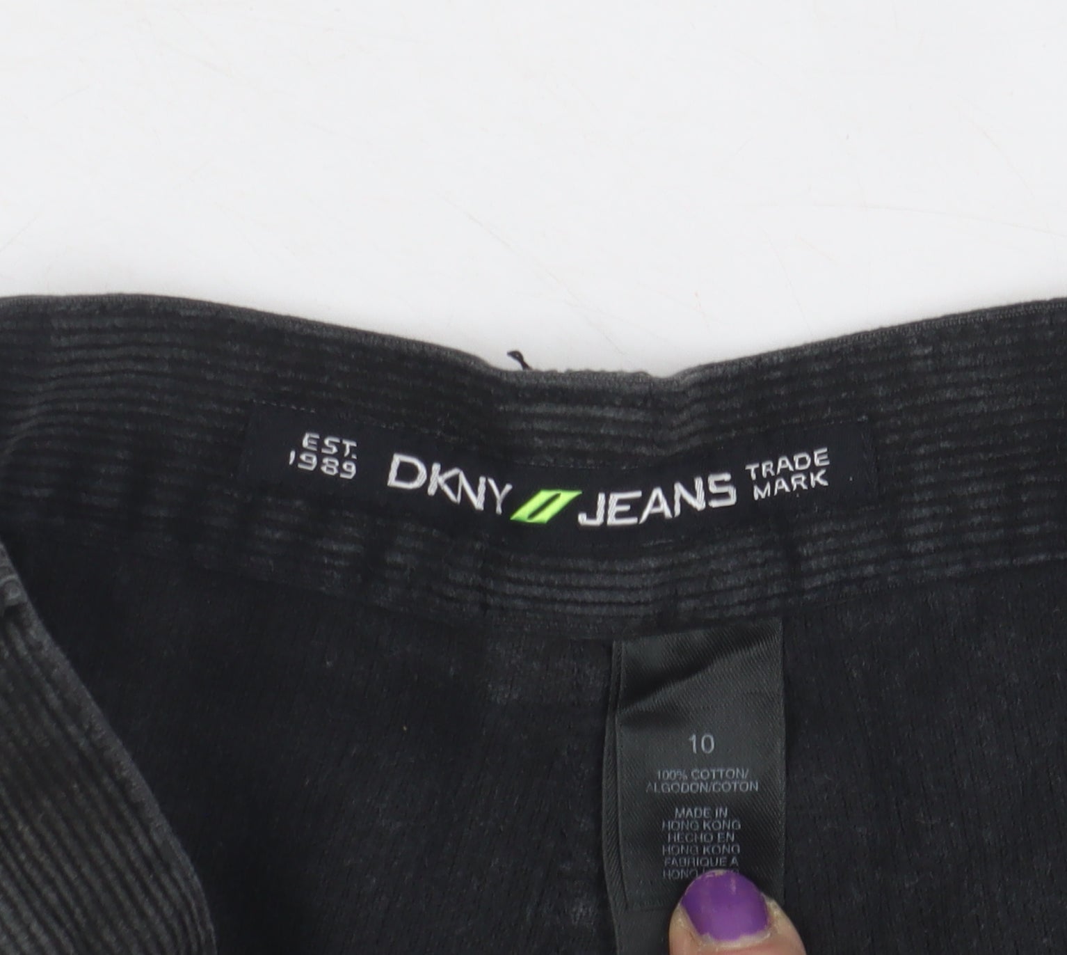 DKNY Women's Black Corduroy Trousers - Size 10, Flared