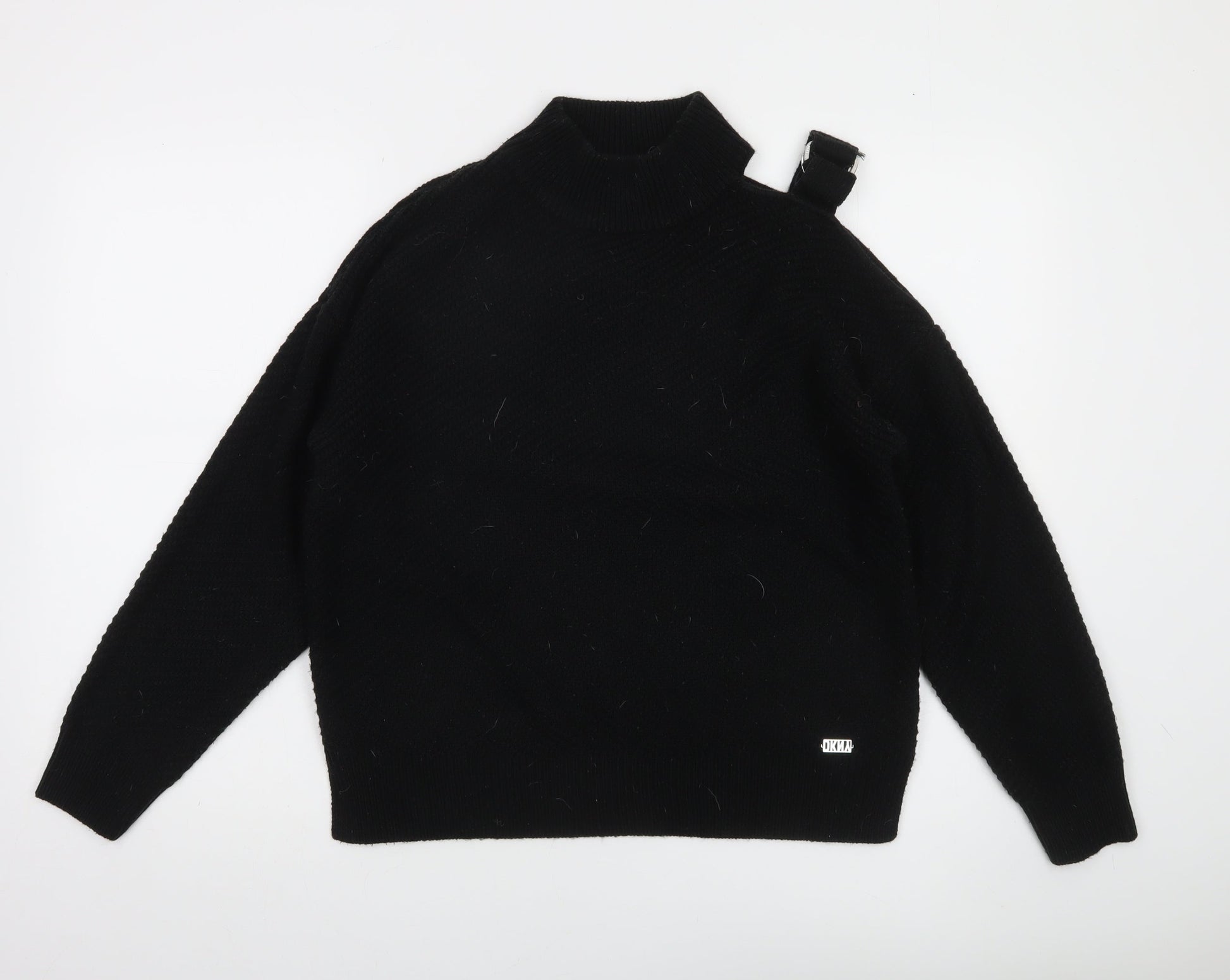DKNY Women's Black Mock Neck Knit Pullover Jumper Size 12