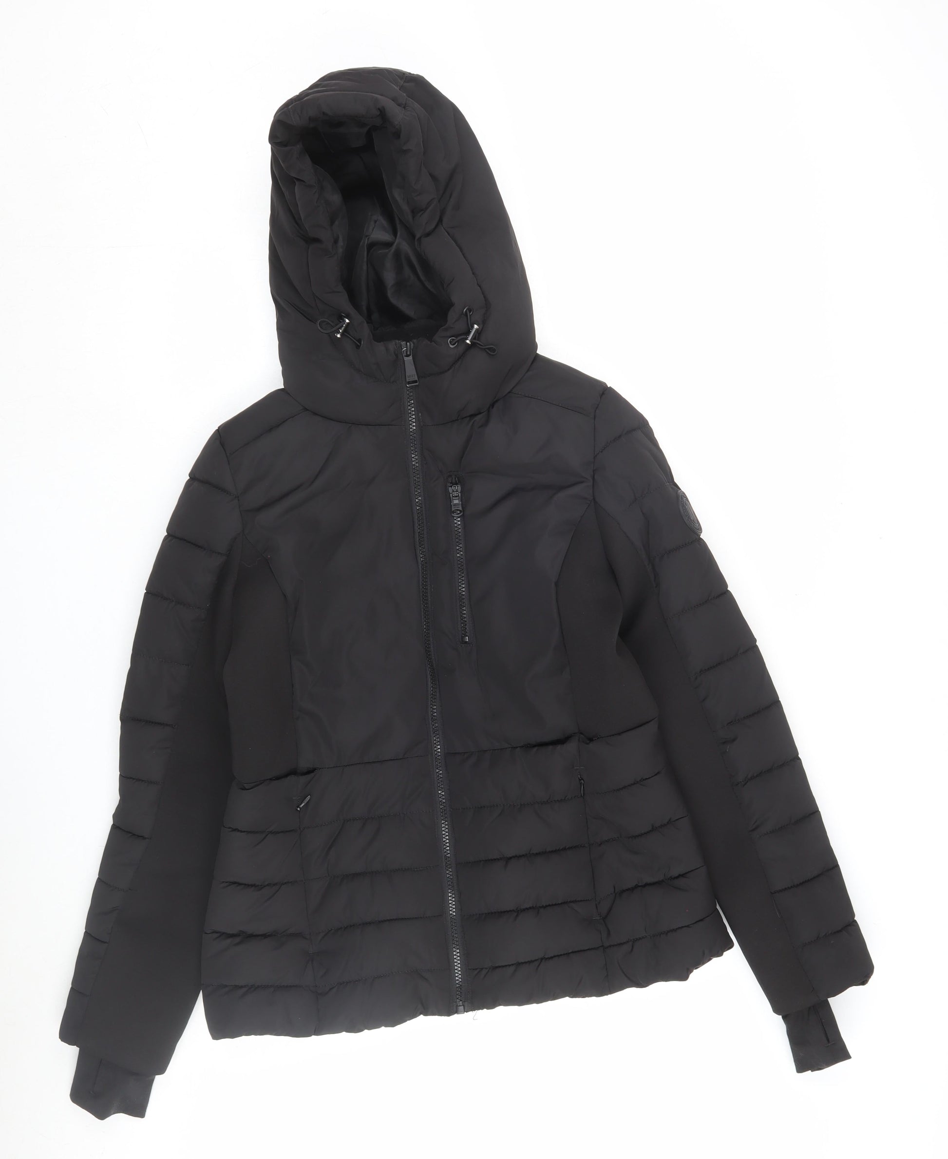 DKNY Women's Black Puffer Jacket with Hood, Size S