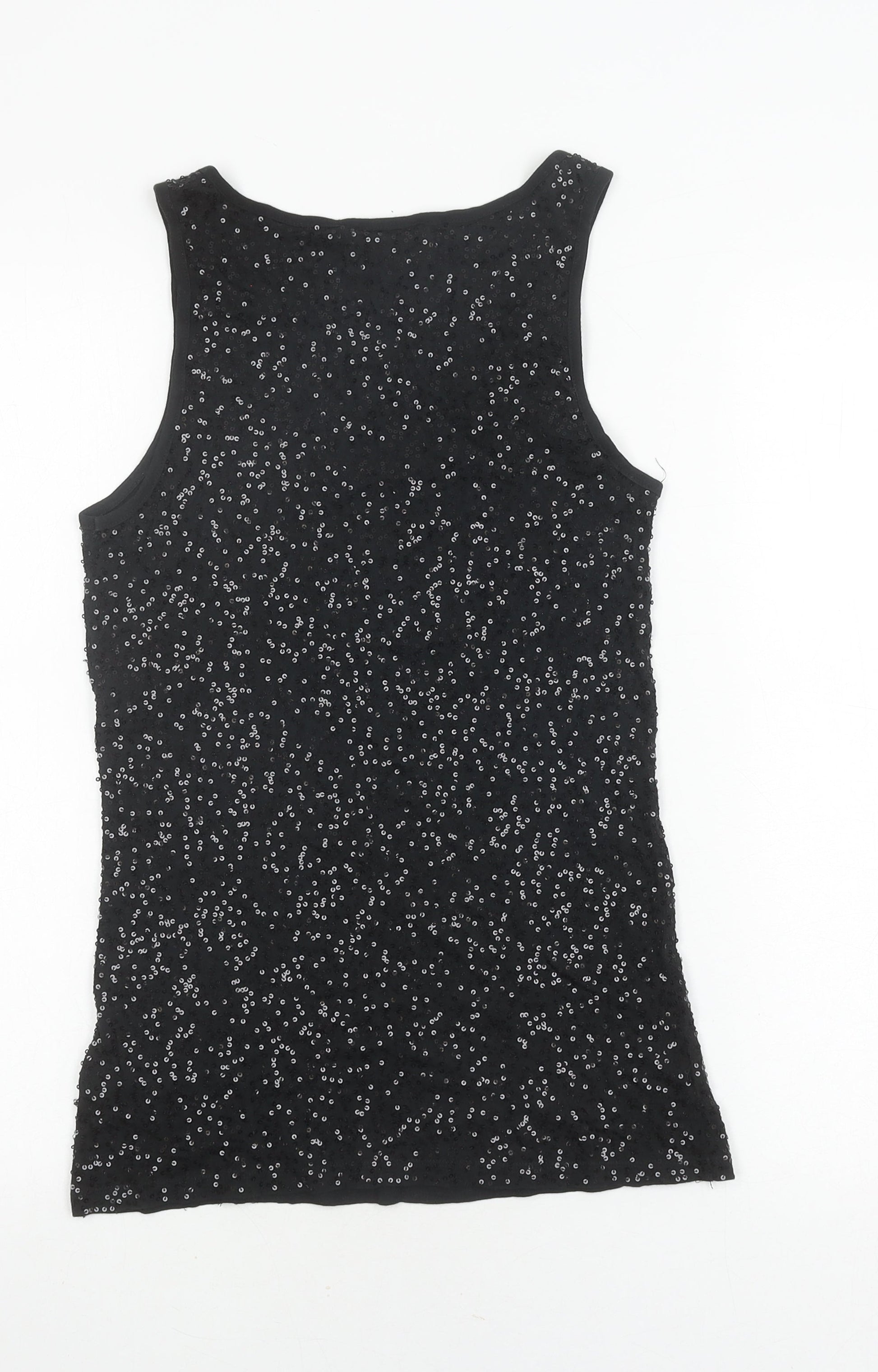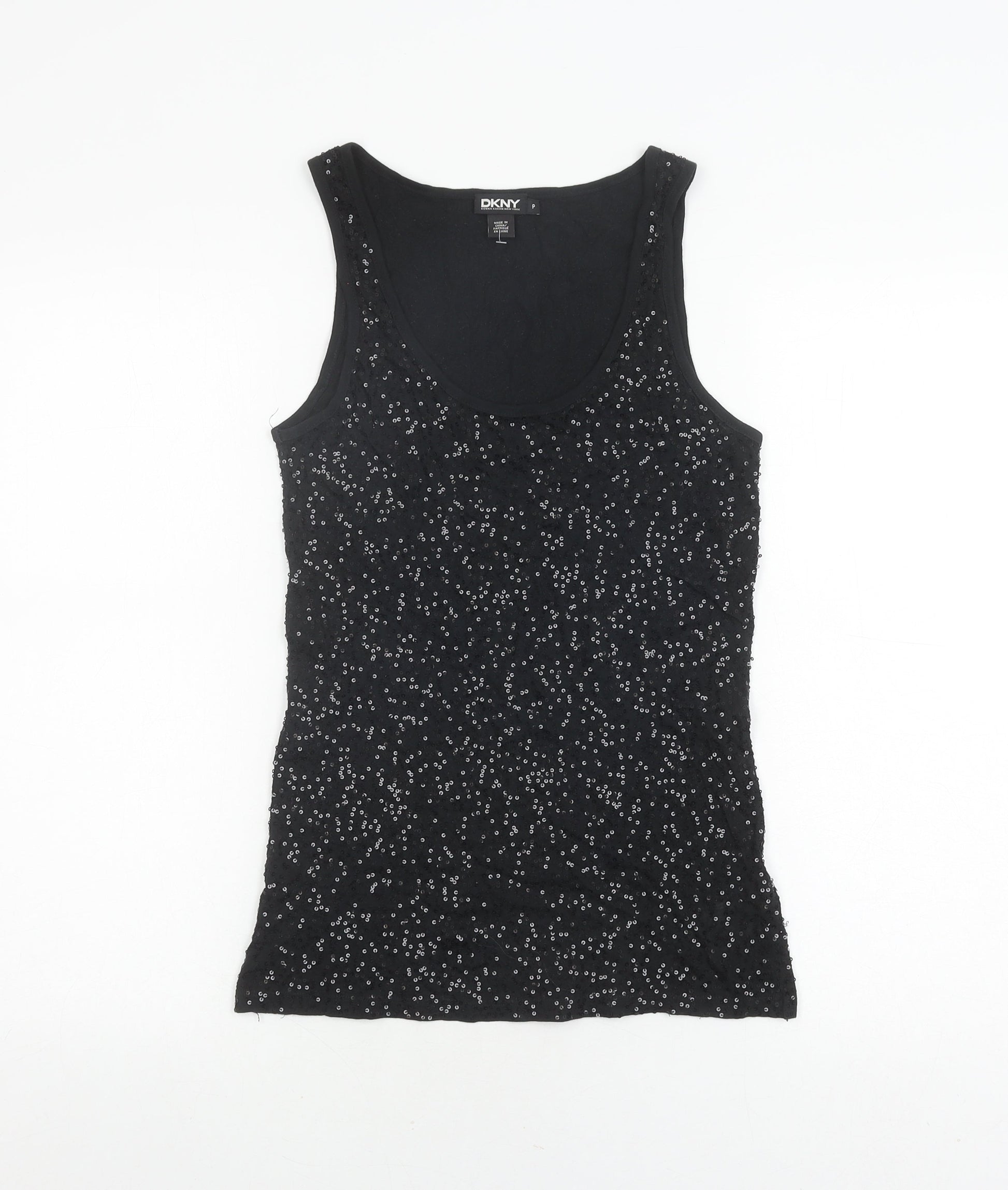 DKNY Women's Black Sequin Tank Top, Petites Size