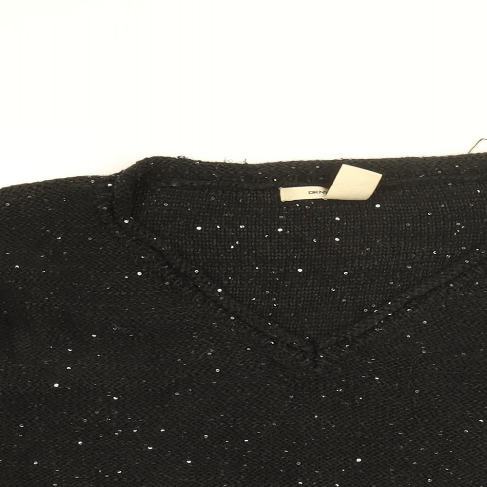 DKNY Womens Black V-Neck Cotton Pullover Jumper Size S