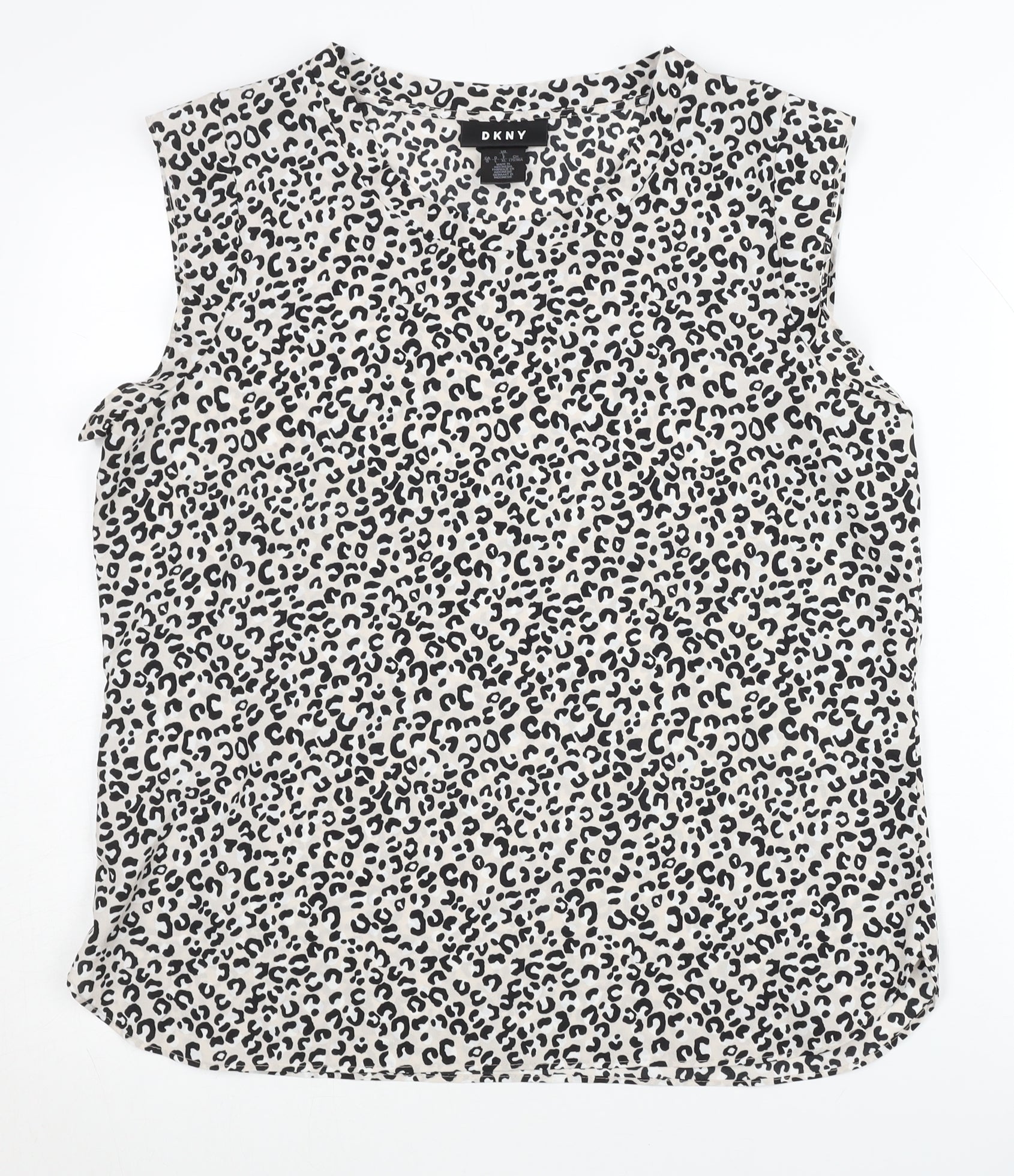DKNY Women's Black White Animal Print Blouse, L, Casual