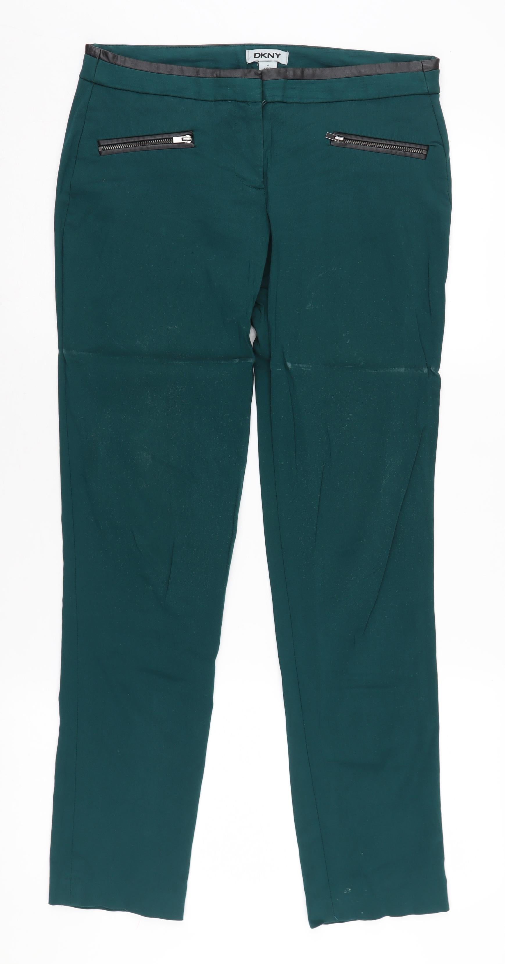 DKNY Women's Green Straight Trousers, Size 4, Casual Chic