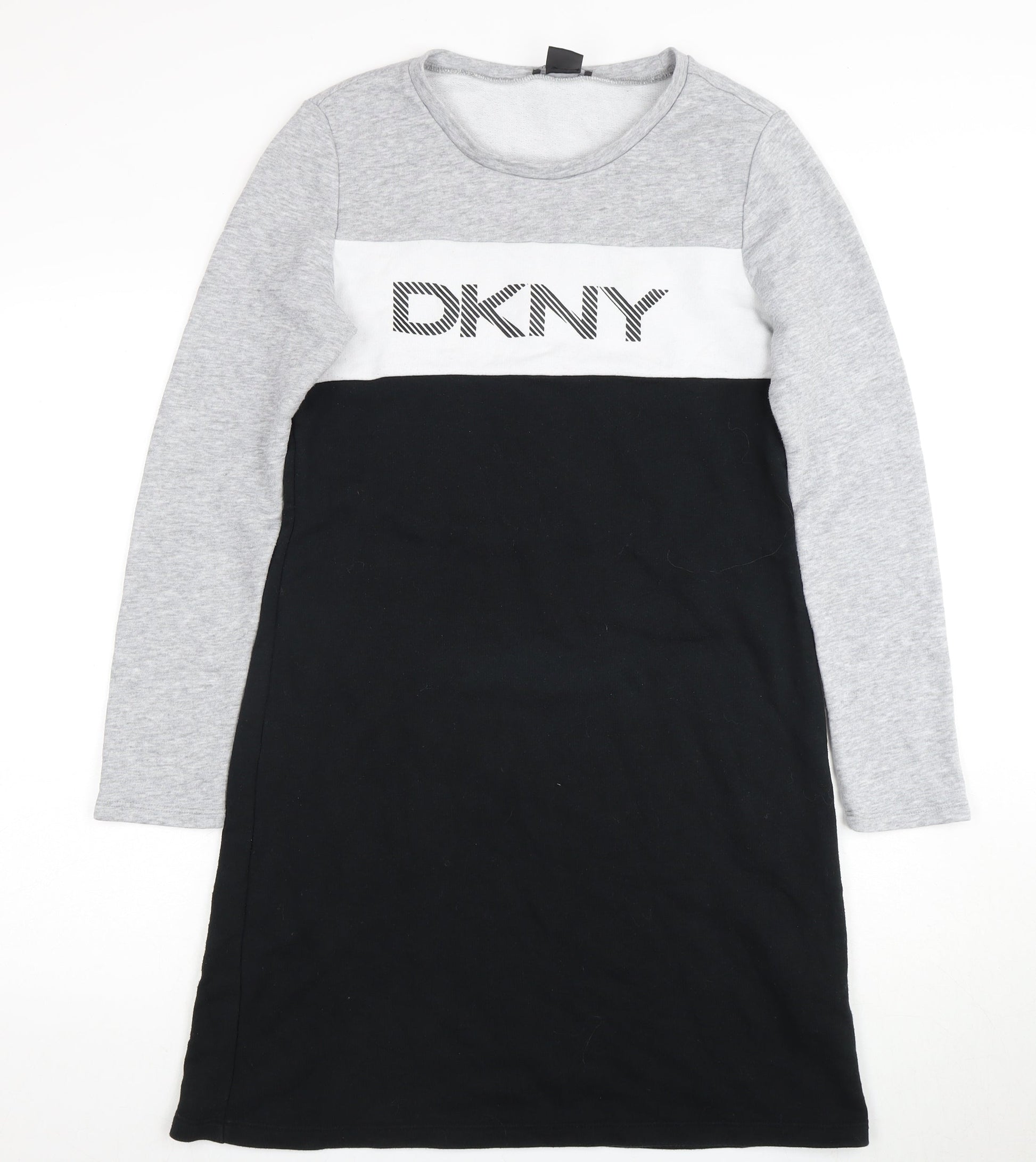 DKNY Women's Grey Colourblock T-Shirt Dress M