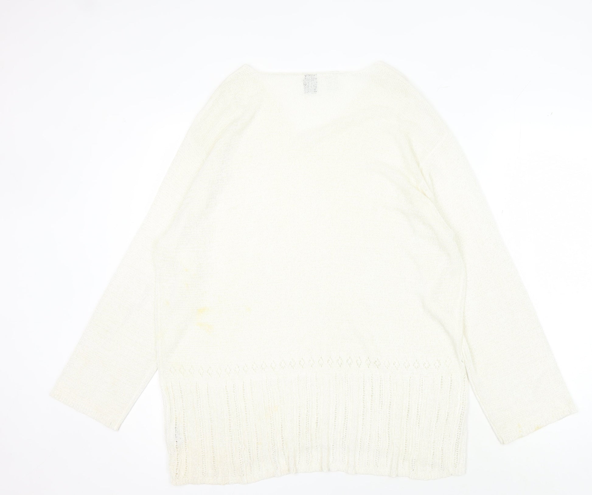 DKNY Women's Ivory V-Neck Pullover Jumper L