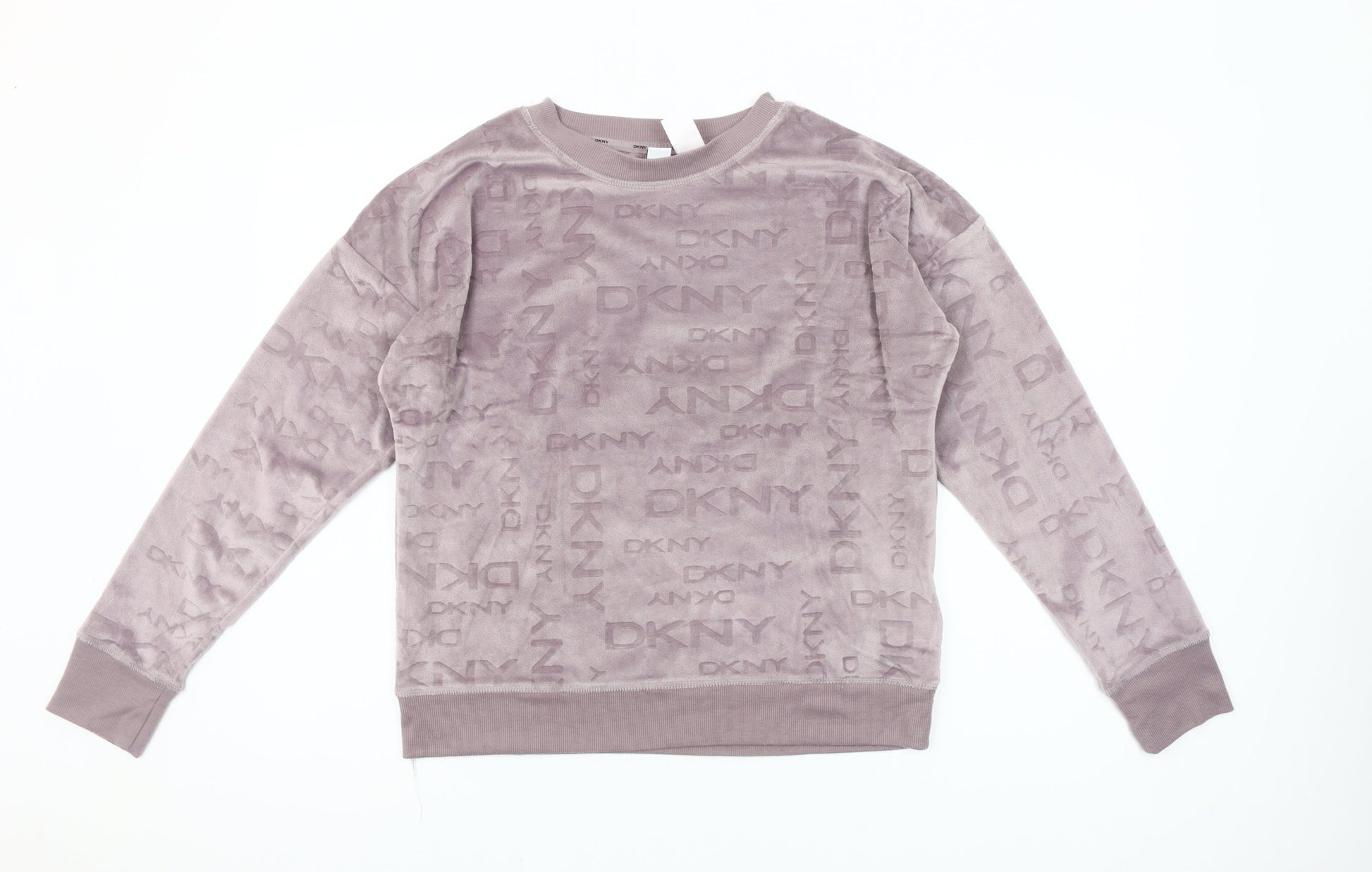 DKNY Women's Mauve Velour Logo Sweatshirt S Pullover Crew Neck