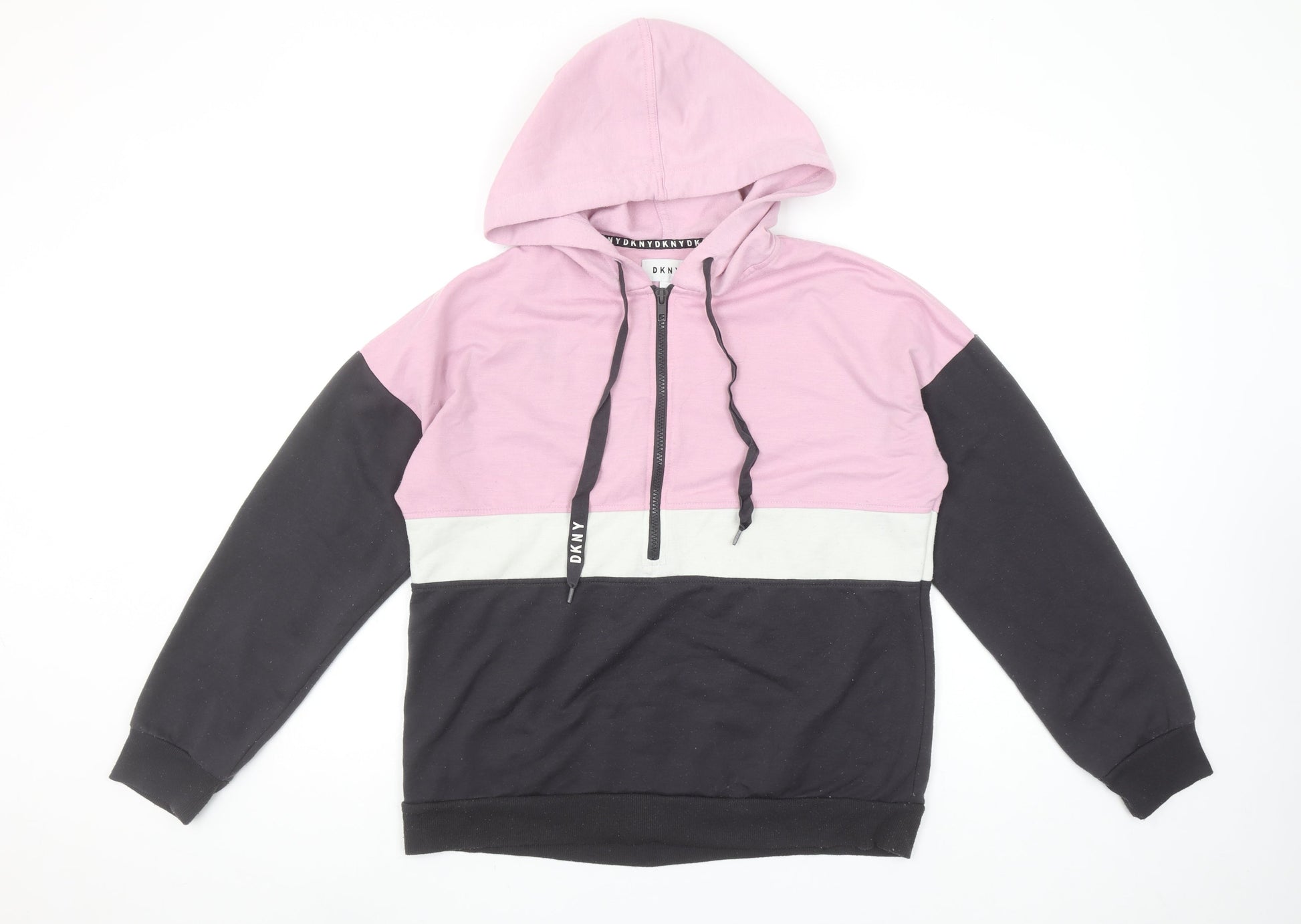 DKNY Women's Pink Colourblock 1/2 Zip Hoodie Size S