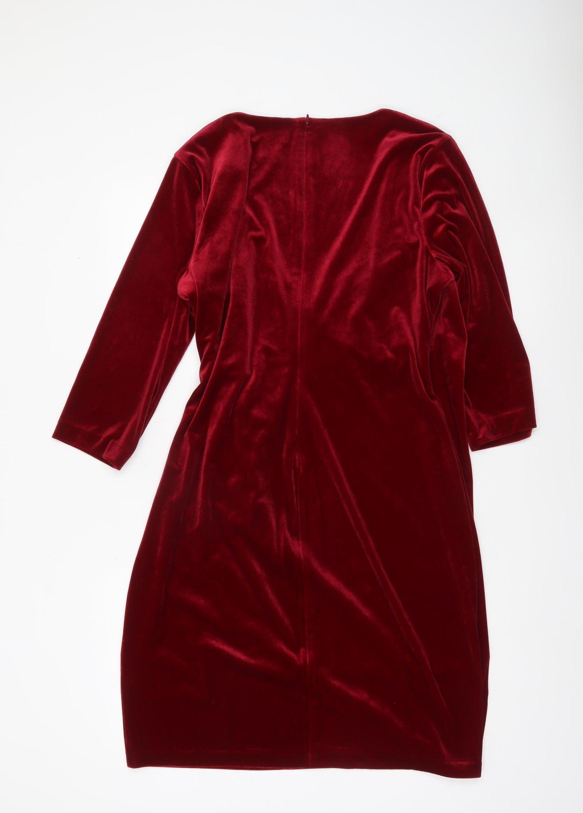 DKNY Women's Red Velvet Wrap Dress Size 18 3/4 Sleeve V-Neck