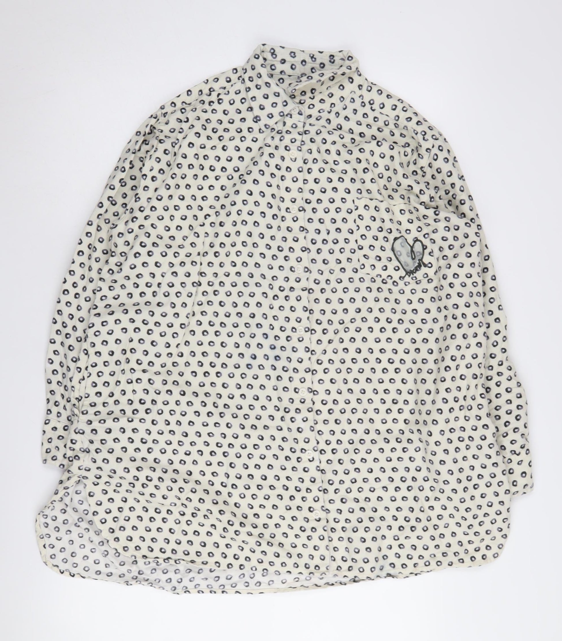 DKNY Women's White Polka Dot Button-Up Shirt M