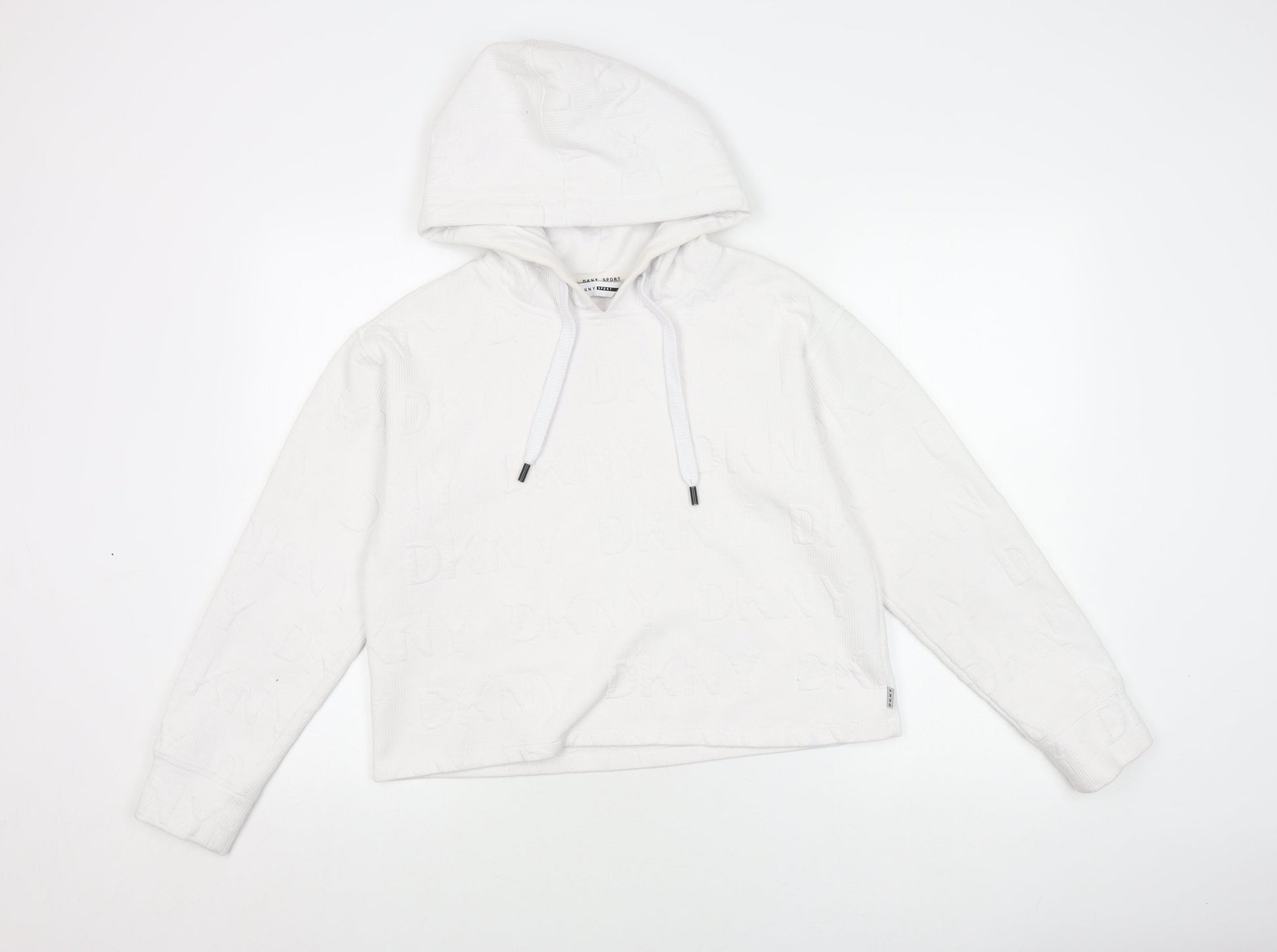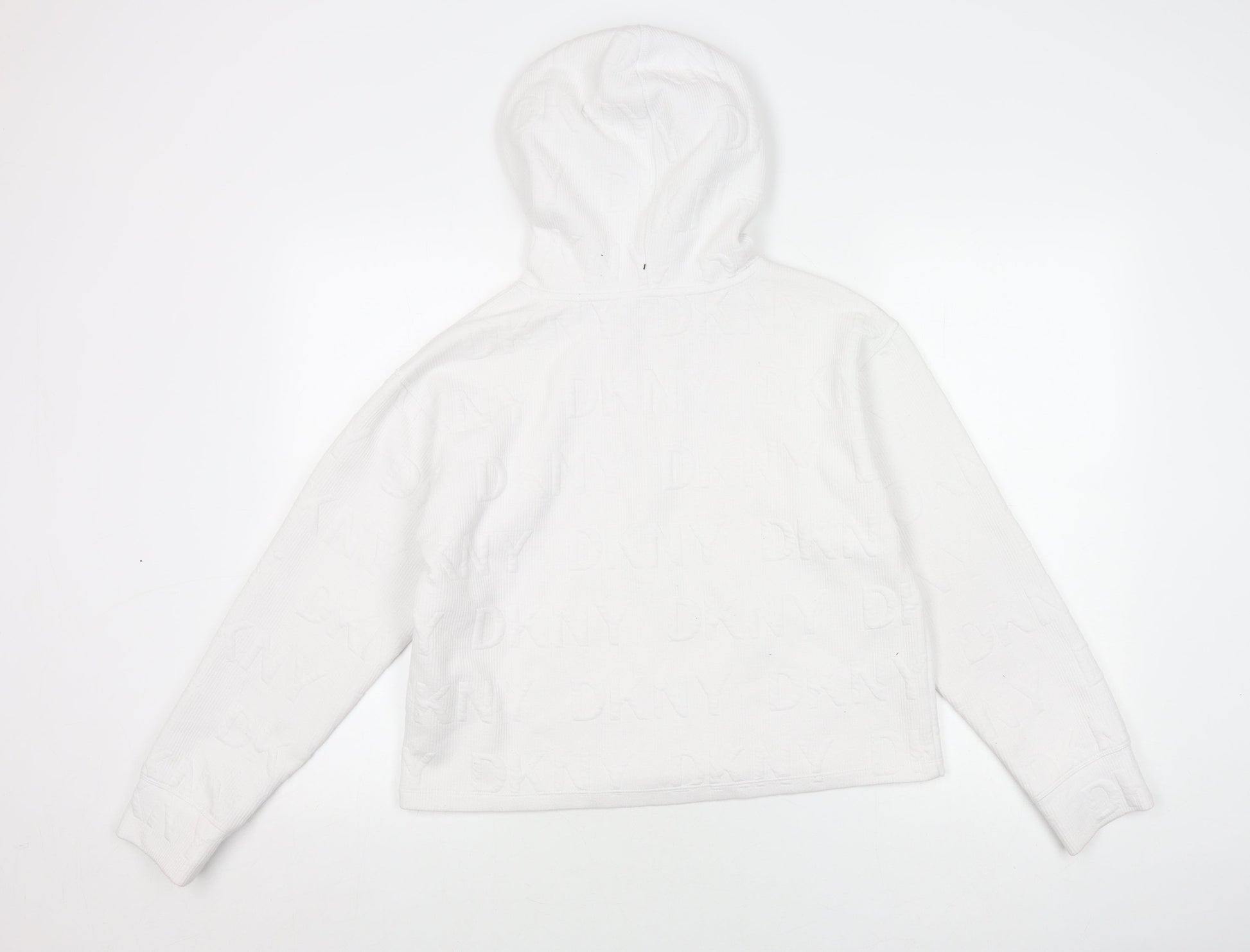 DKNY Women's White Pullover Hoodie, Small, Logo Print