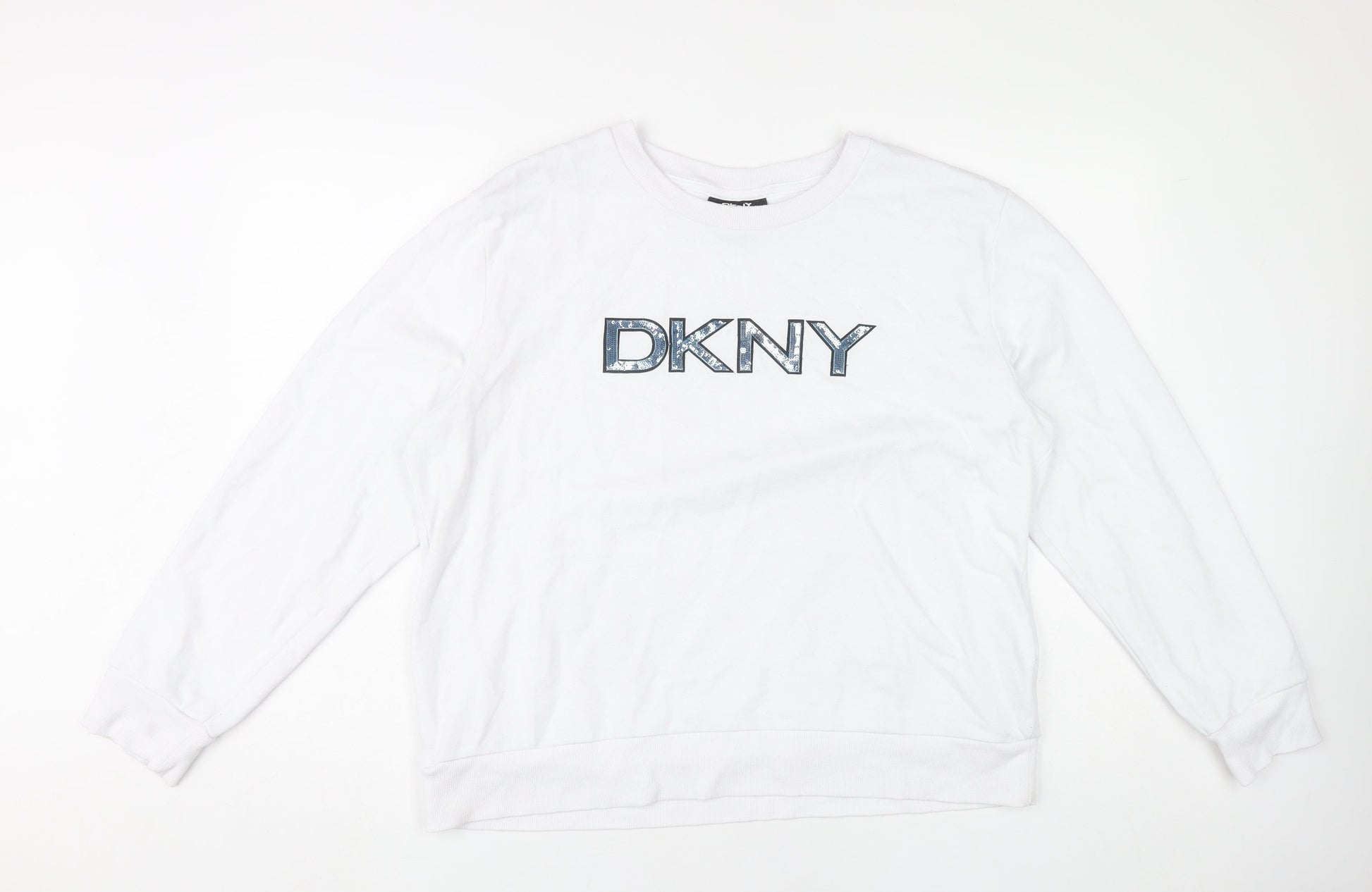 DKNY Womens White Pullover Logo Sweatshirt Size M