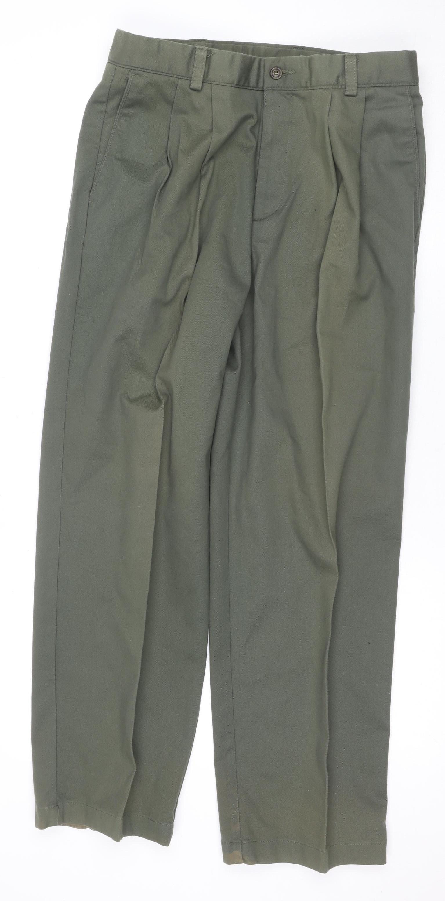 Dockers Men's Green Trousers, Size 33, Button Closure