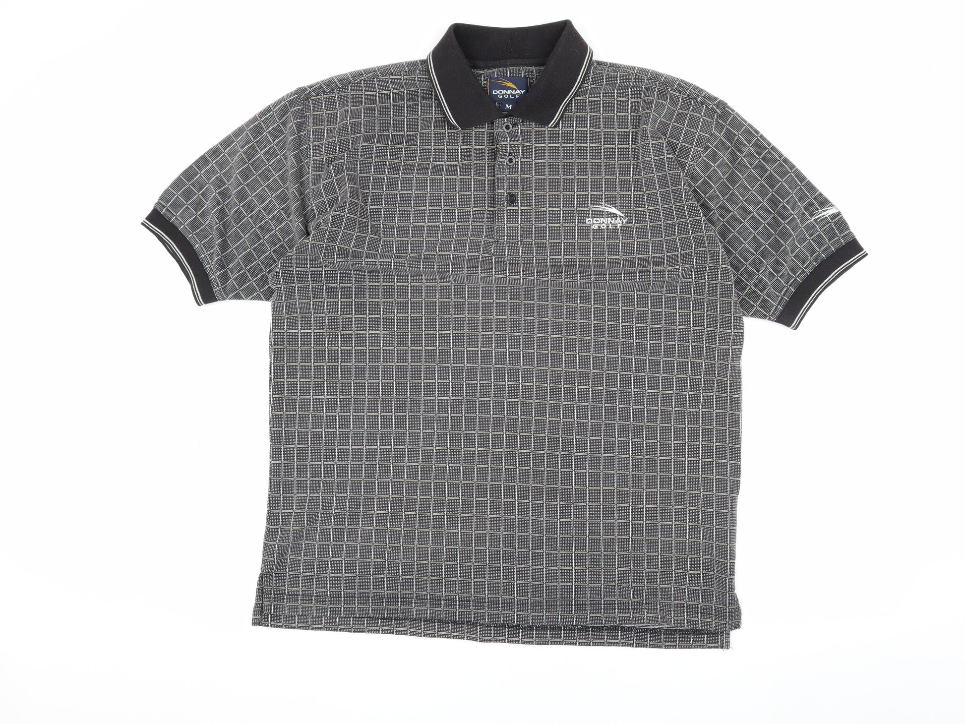 Donnay Men's Black Check Polo Shirt M Casual Golf