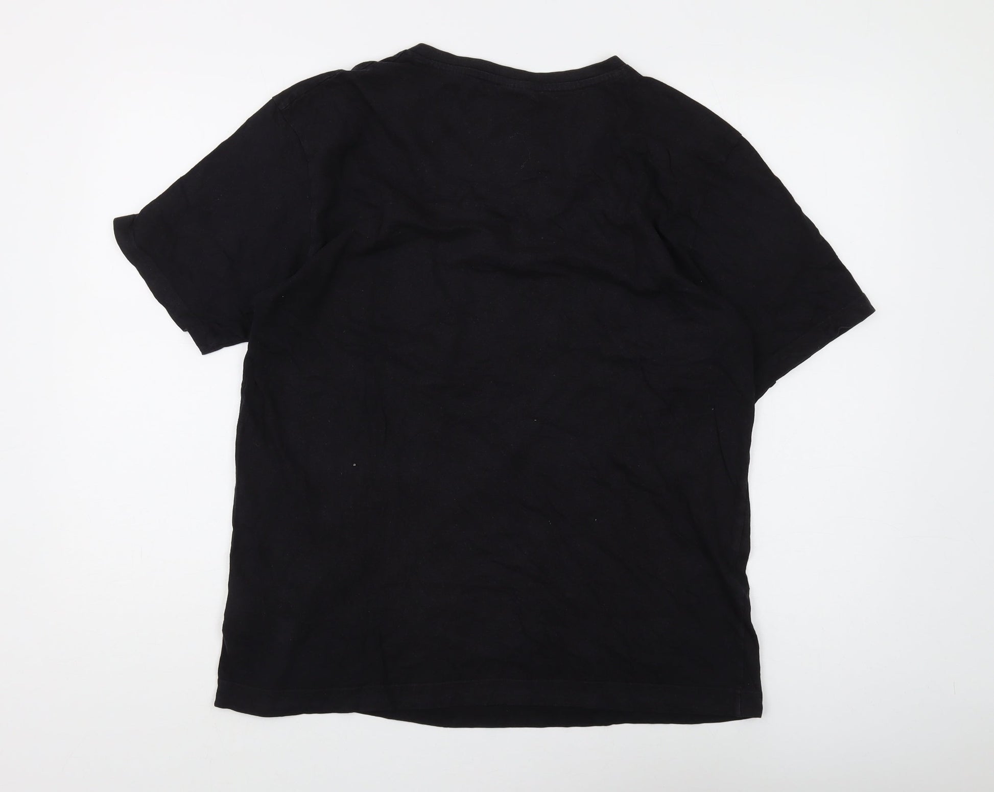 Donnay Men's Black V-Neck T-Shirt Size L, Solid Logo Design