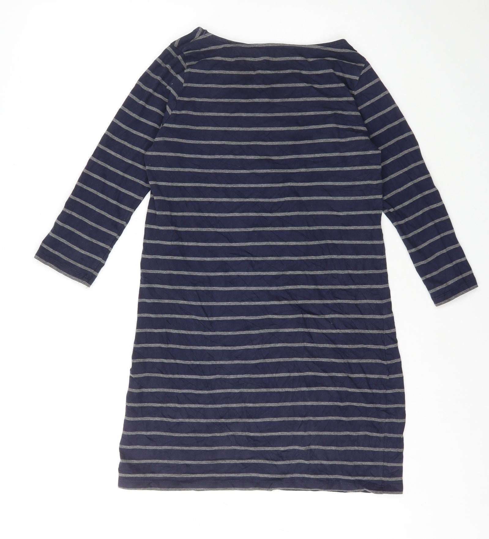 Dorothy Perkins Womens Blue Striped Cotton Bodycon Size 10 Round Neck Pullover
