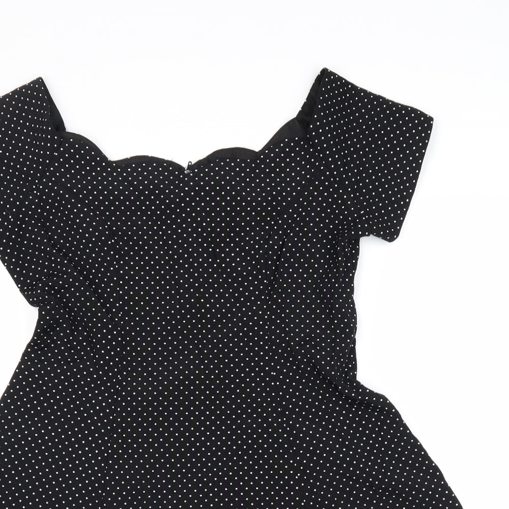 Dramatix Womens Black Polka Dot Viscose Fit & Flare Size 10 Boat Neck Zip - Scalloped Neckline
