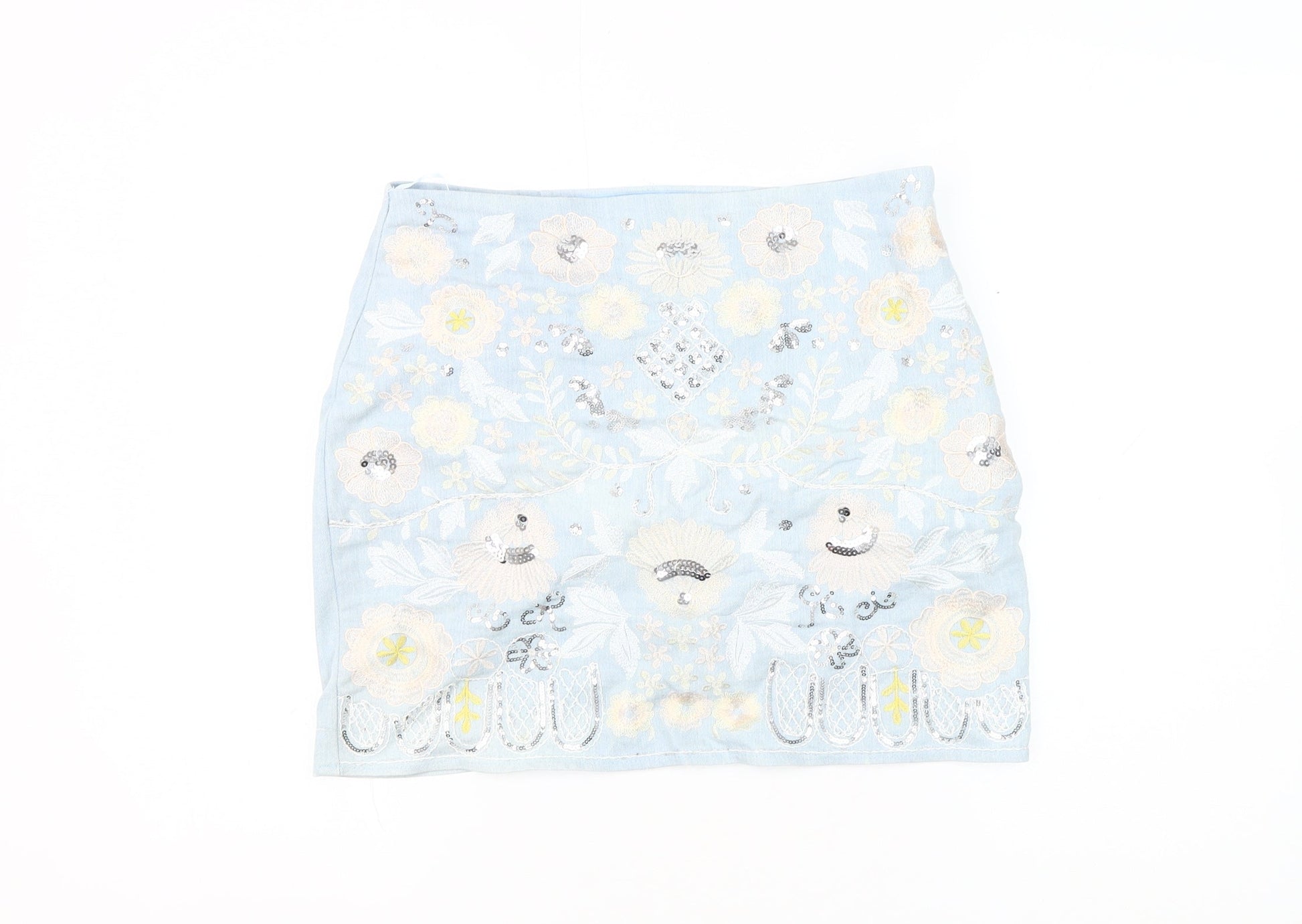 Drôle de Copine Blue Embroidered Sequin Pencil Skirt M