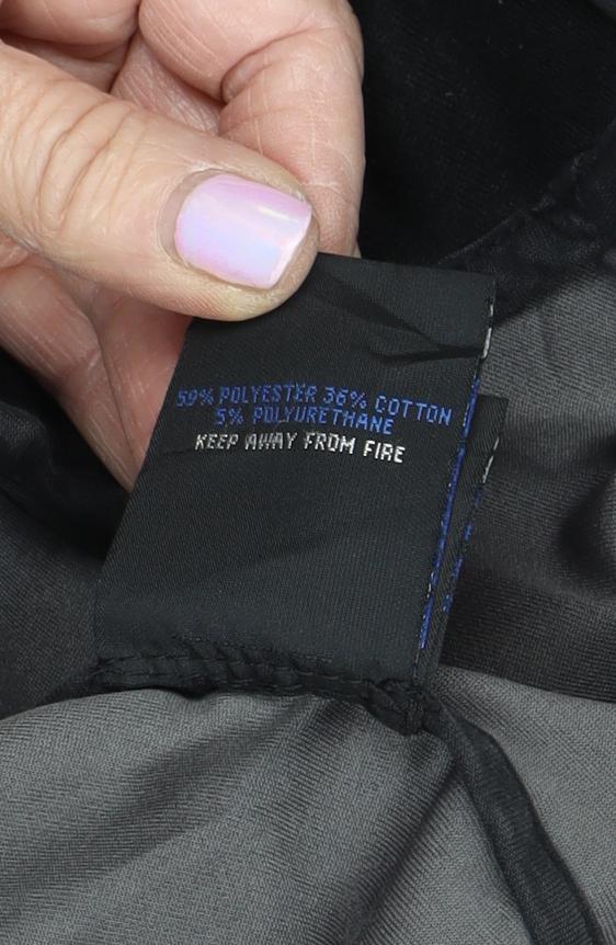 - Material Breakdown: 59% Polyester 36% Cotton 5% Polyurethane