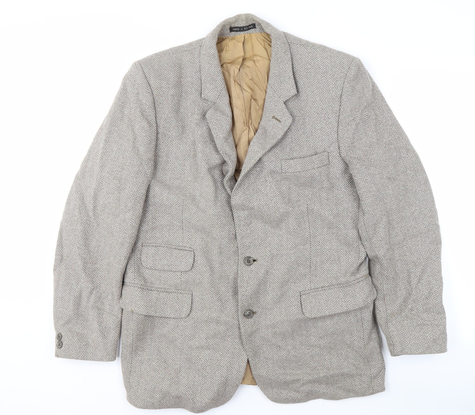 Dunn & Co Men’s Grey Herringbone Wool Blazer 42R