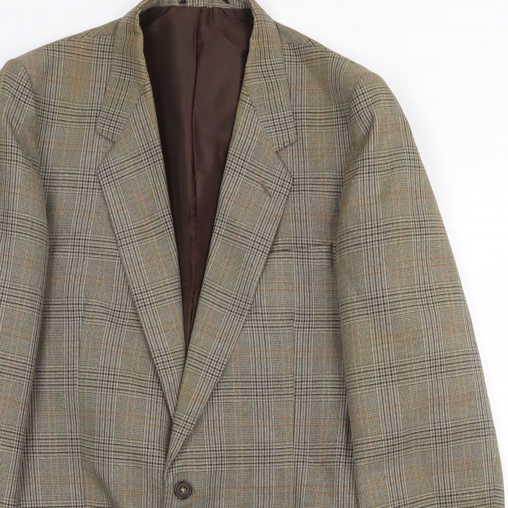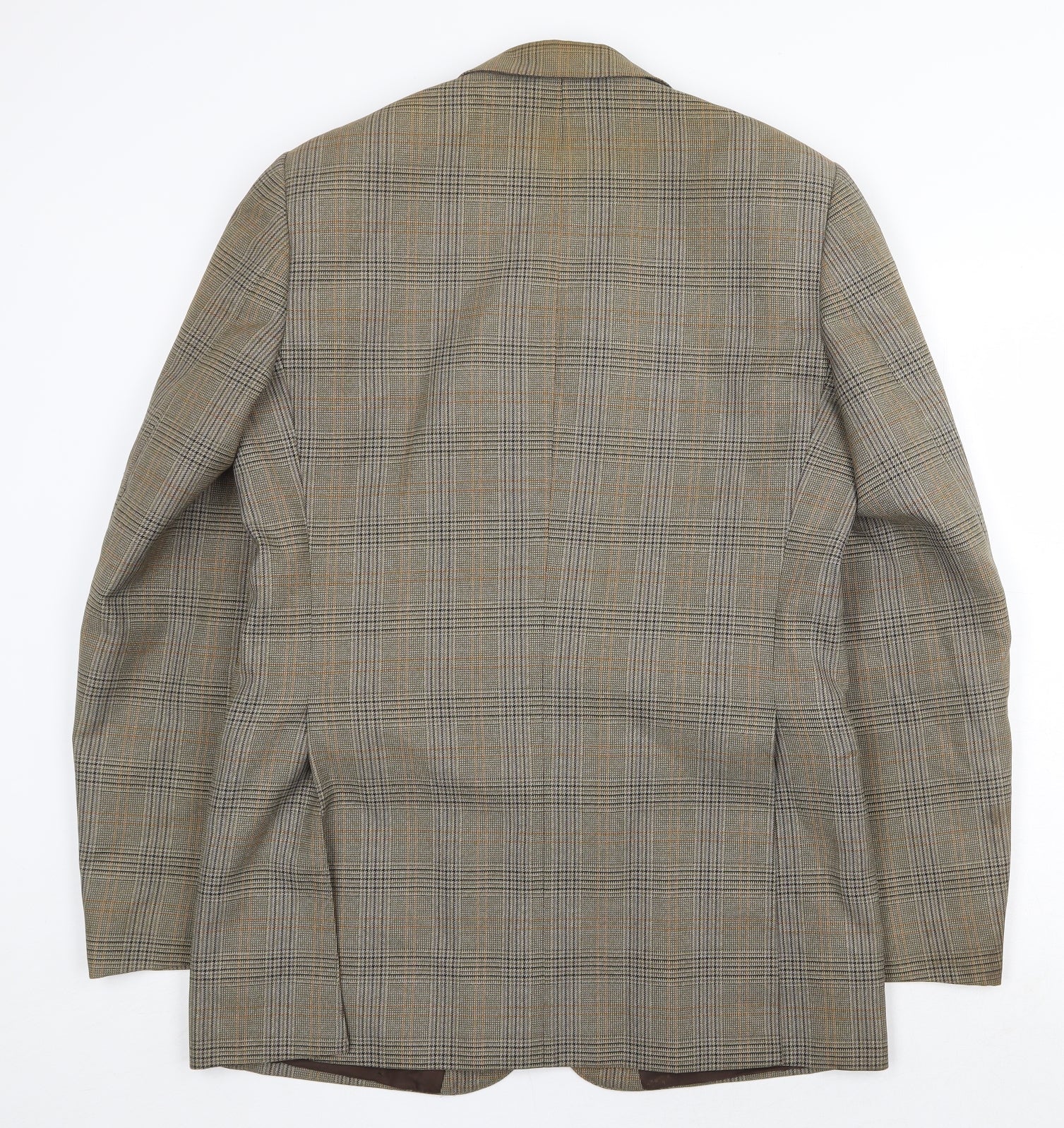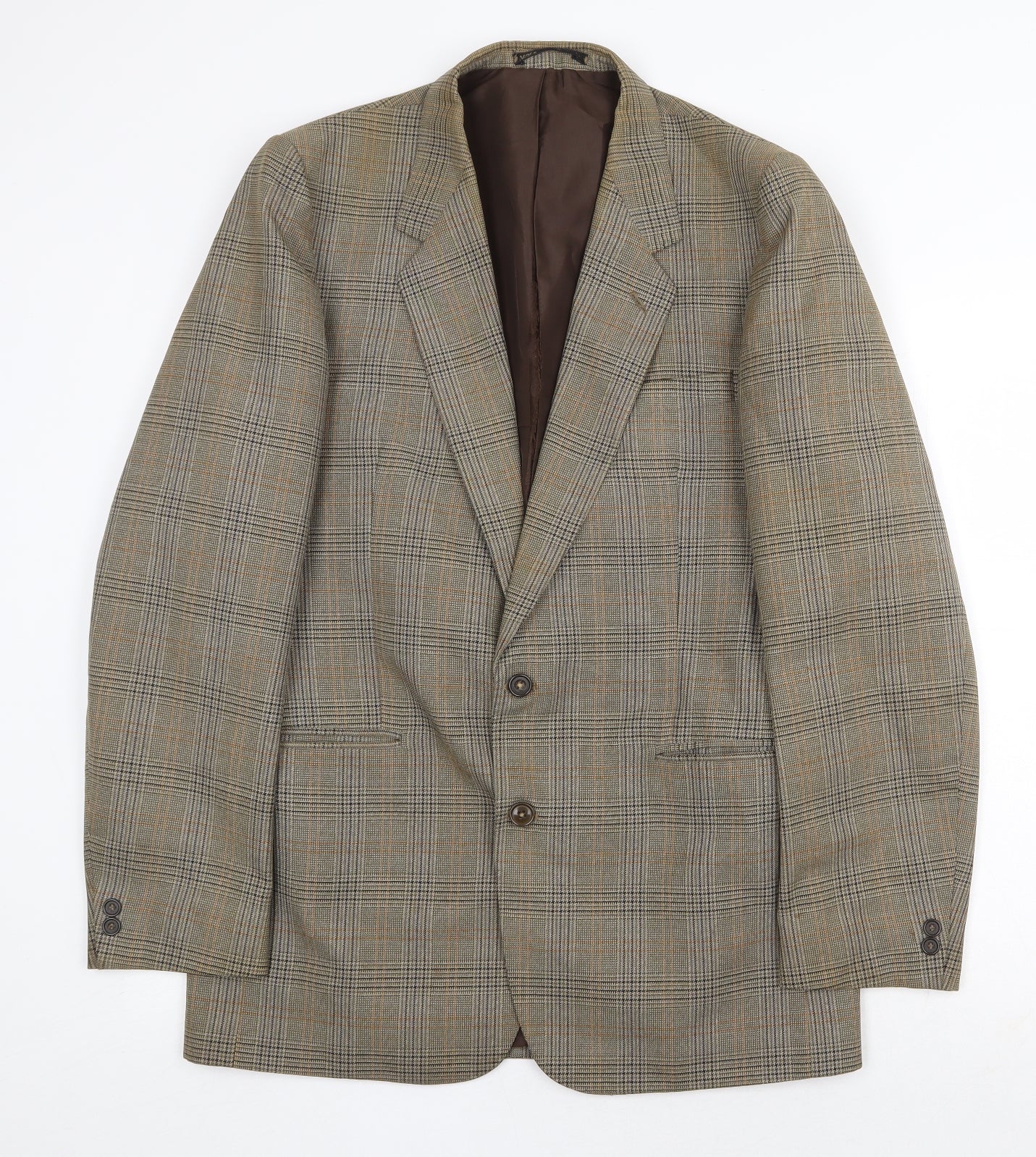 Dunn & Co Mens Brown Plaid Polyester Jacket Suit Jacket Size 40 Regular