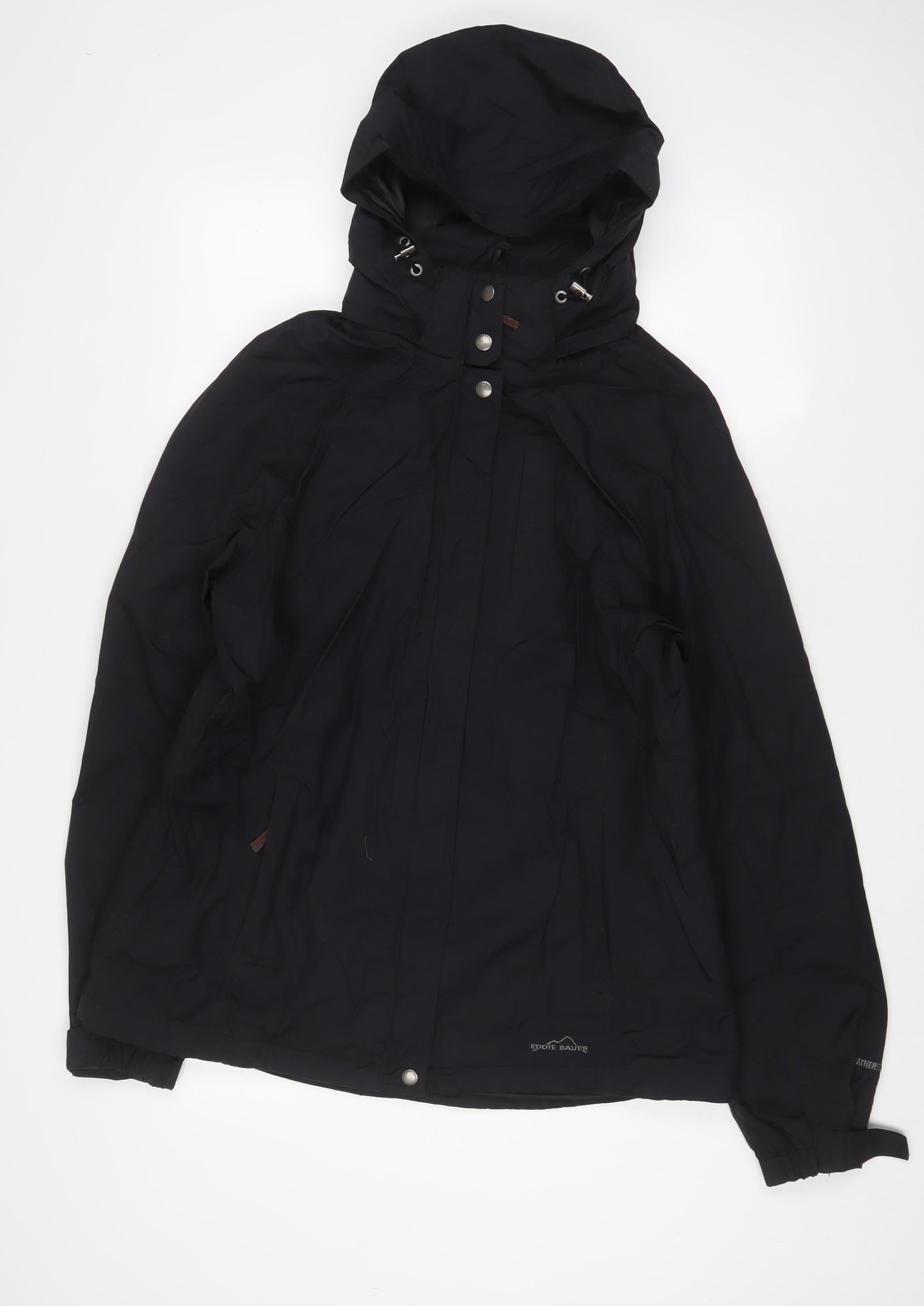 Eddie Bauer Mens Black Rain Coat Jacket Size XL Zip - Logo, Embroidered