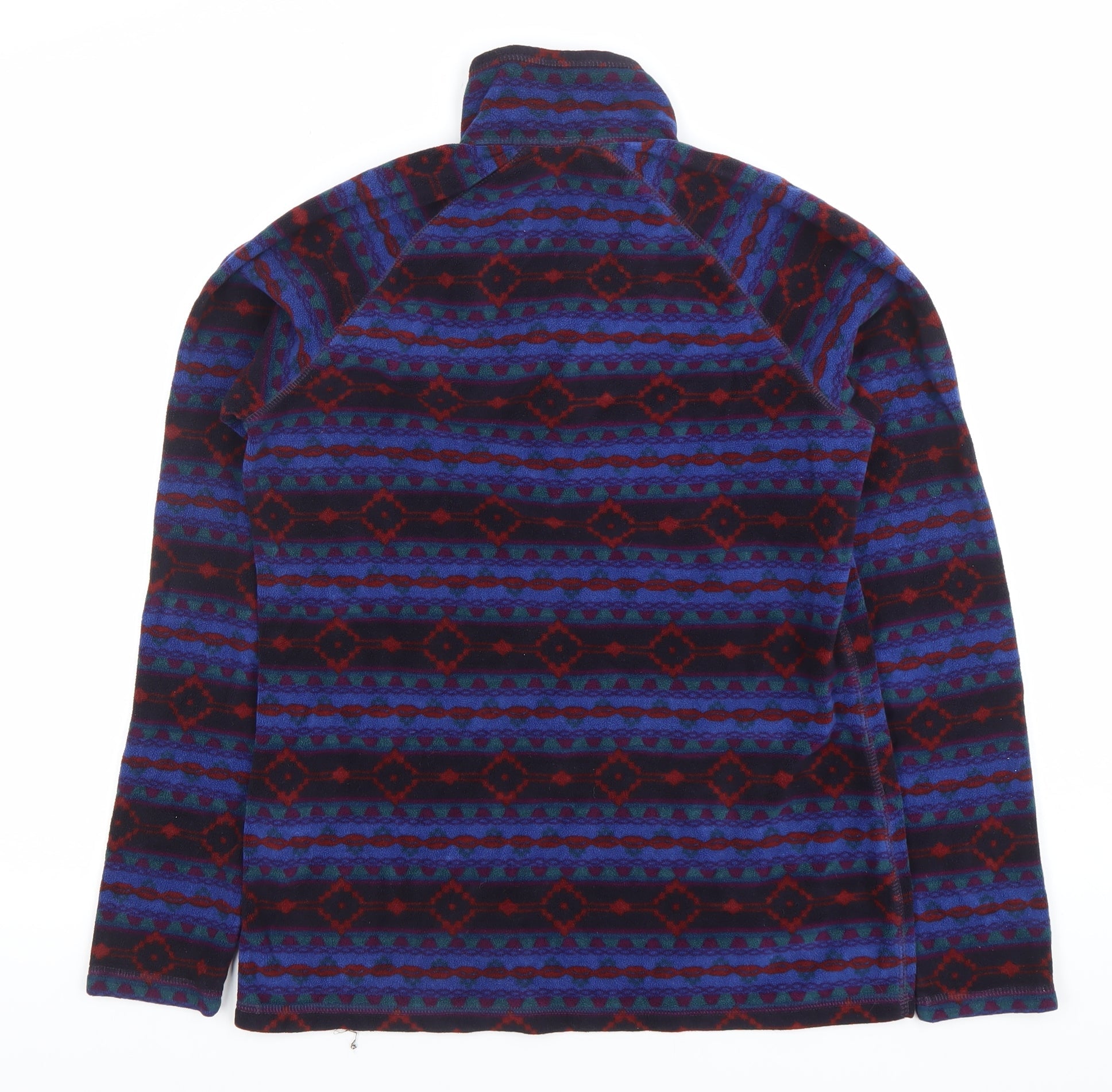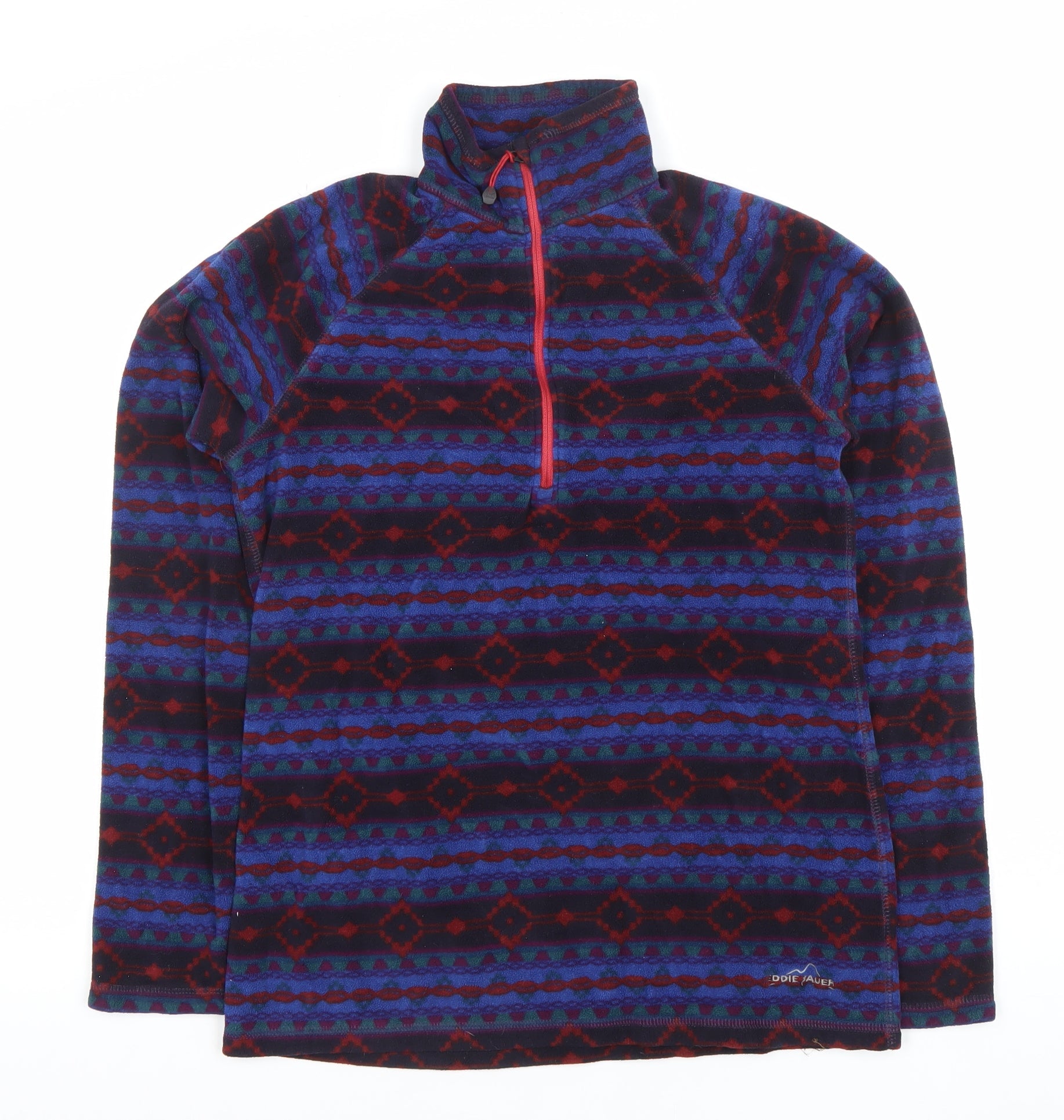 Eddie Bauer Womens Blue Aztec Fleece Sweatshirt M 1/4 Zip Hiking Top