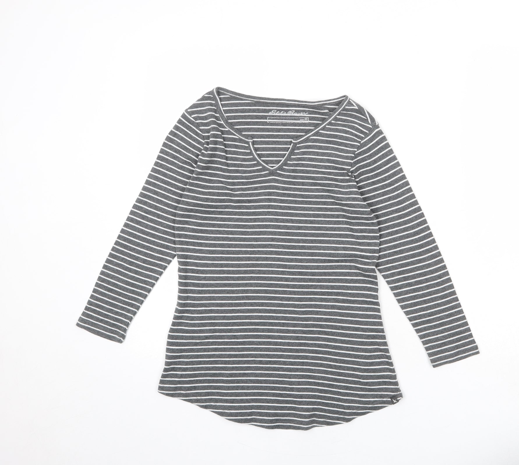 Eddie Bauer Womens Grey Striped 100% Cotton Basic T-Shirt Size XS V-Neck