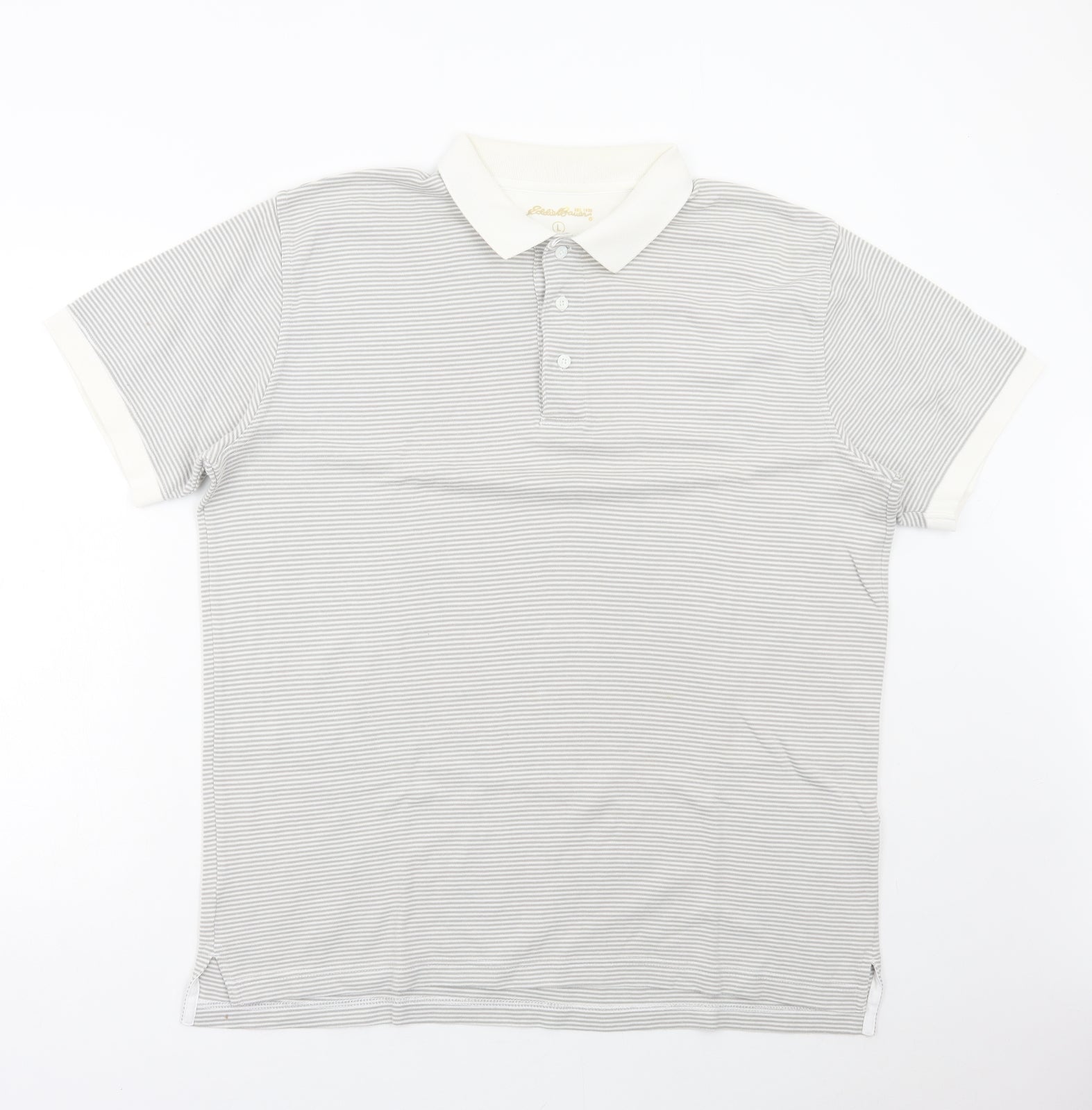 Eddie Bauer Womens Grey Striped Cotton Basic Polo Size L Collared