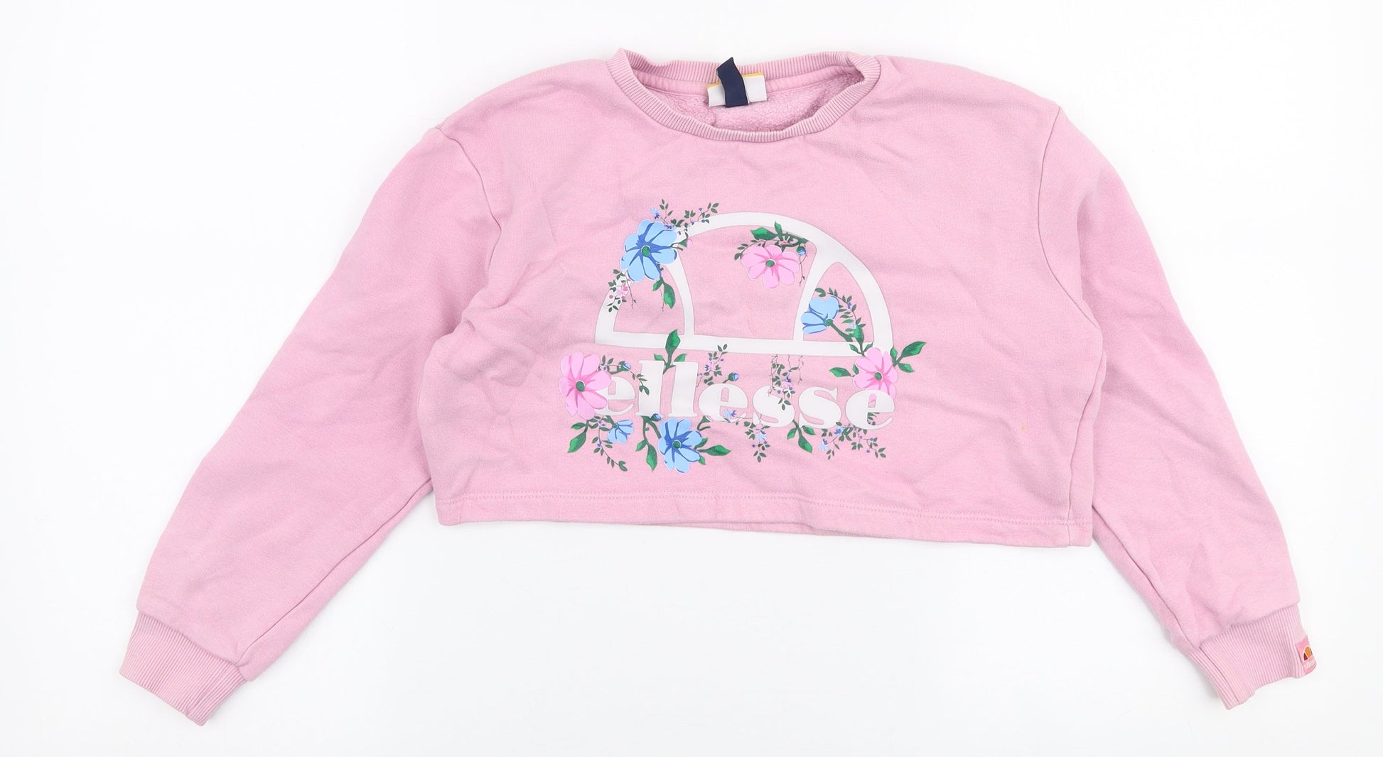 ellesse Girls Pink Floral Cotton Pullover Sweatshirt Size 8-9 Years Pullover