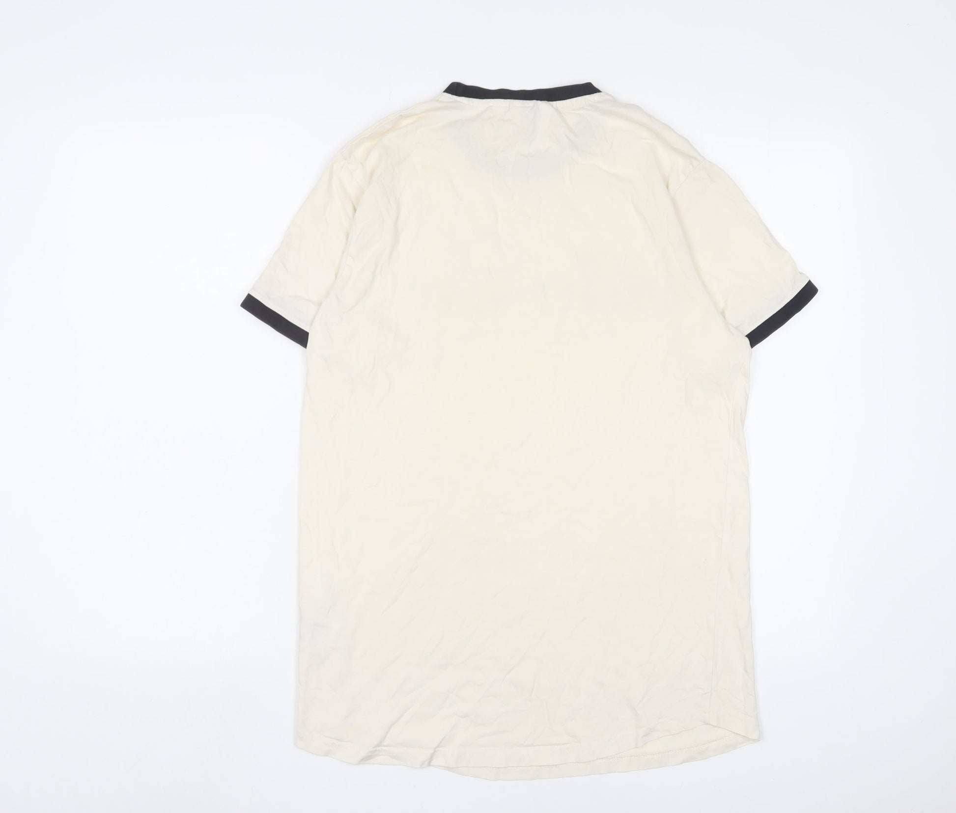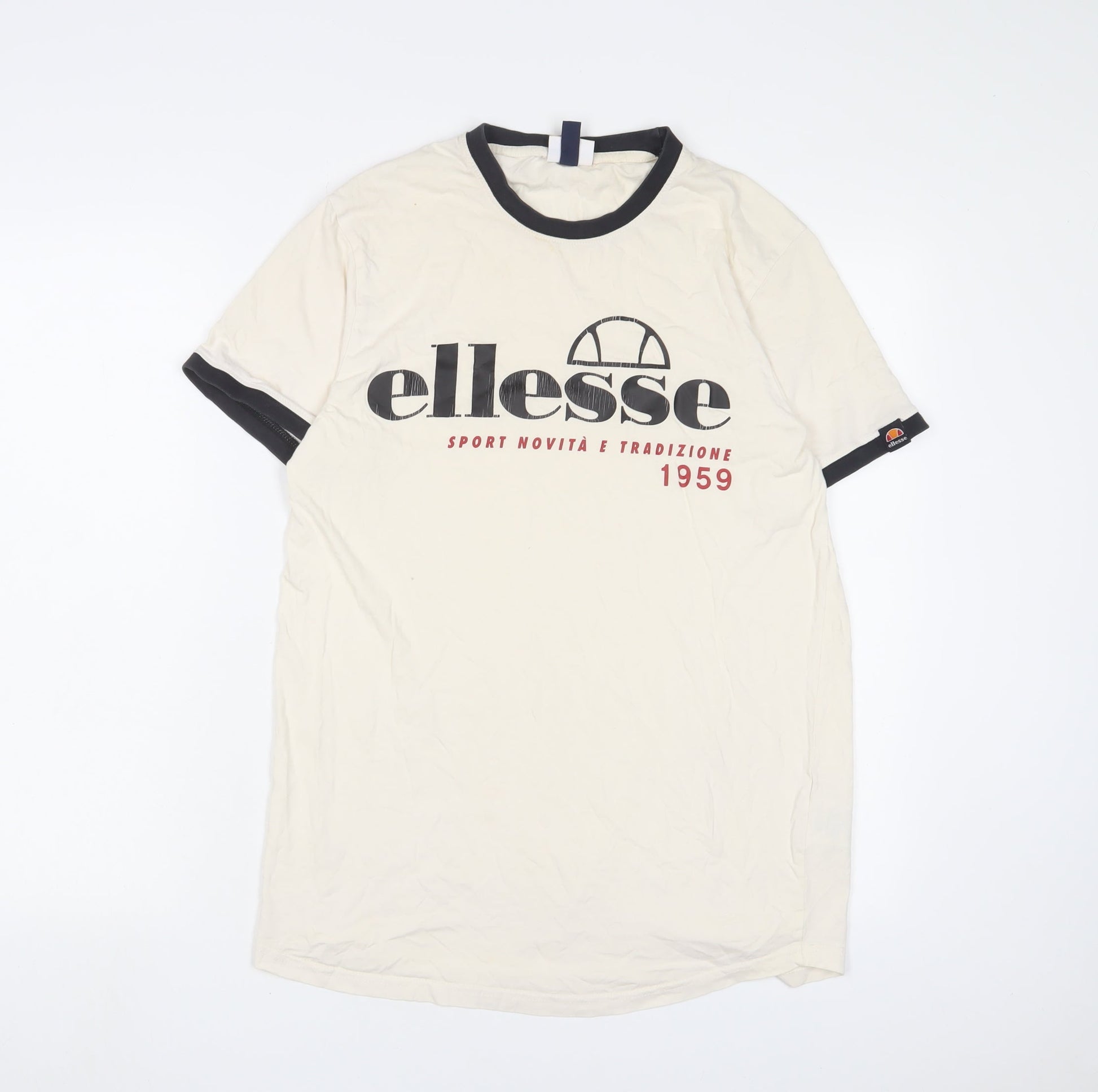 ellesse Mens Beige Cotton T-Shirt Size S Crew Neck - Logo